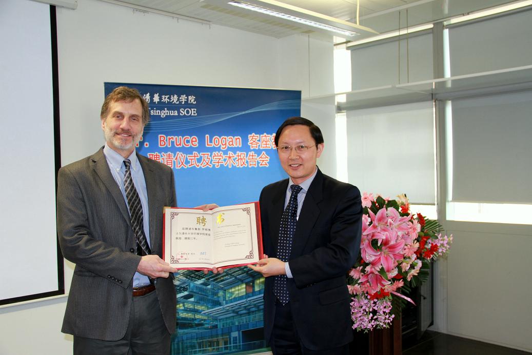 3月20日下午,美国宾州州立大学环境工程研究所所长、氢能中心主任布鲁斯·罗根(Bruce Logan)教授受聘担任江南网页版客座教授。环境学院院长余刚为罗根教授颁发聘书。仪式后,罗根教授做客环境学院学术委员会主办的清华大学环境论坛,为大家做题为“微生物电化学技术与盐度梯度能量结合的应用前景”(Microbial Electrochemical Technologies (METs) Meet Salinity Gradient Energy)的精彩报告。