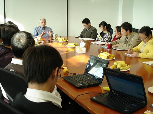 如何处理找工作与写论文的矛盾?怎样合理安排时间?博士期间发表多少论文合适?如何处理同导师的关系?2011年10月25日,环境学院院馆,当这些问题一摊上桌面,引来共鸣者众。美国工程院院士、伊利诺伊大学教授斯诺因克(Vernon L. Snoeyink)微笑着坐在长桌一端,将水果盘推到大家面前,说:“吃点水果吧。”