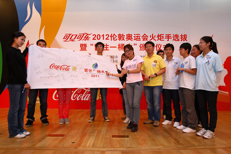 作为奥运会全球合作伙伴,可口可乐公司为了鼓励青年学生参与环保事业,积极传承环保理念,决定从2011年“留住一桶水”环保大学生绿之队中选拔出一名代表,参加2012伦敦奥运会火炬接力活动,同时传递中国青年的环保精神。
