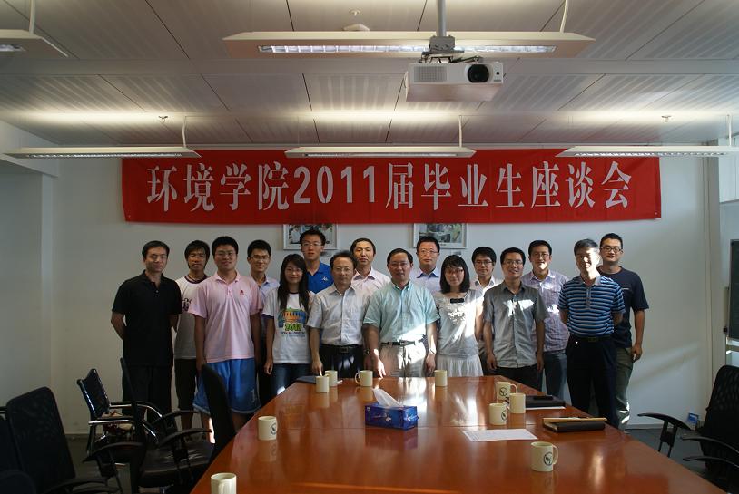2011年6月26日下午,环境学院2011届毕业生座谈会在中意环境节能楼705会议室举行,院长余刚、党委书记杜鹏飞、副院长左剑恶、党委副书记刘建国以及研究生工作组和学生组负责人与11名2011届本科生和研究生毕业生代表举行座谈,校党委研究生工作部部长张小平应邀出席。座谈会由刘建国主持。