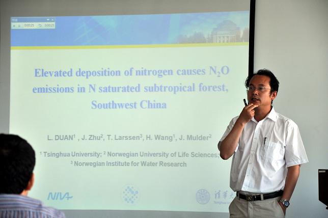 段雷老师以“我国高氮沉降地区亚热带森林生态系统的N2O排放特征与机理”为主题做了报告。他提出. 反硝化作用能为流域提供很强的酸中和能力,是中国亚热带森林区域中氮沉降的重要来源。