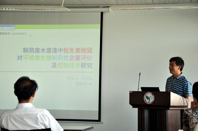 左剑恶老师汇报了“制药废水废渣中抗生素残留对环境微生物耐药性定量评价及控制技术研究”的进展情况。他表示,抗生素的生产会带来很多环境问题,目前制药废水的处理技术还有待完善,下一步他们将继续分析制药废水、残渣中分离的金黄色葡萄球菌的耐药水平,完善定量化评价标准。
