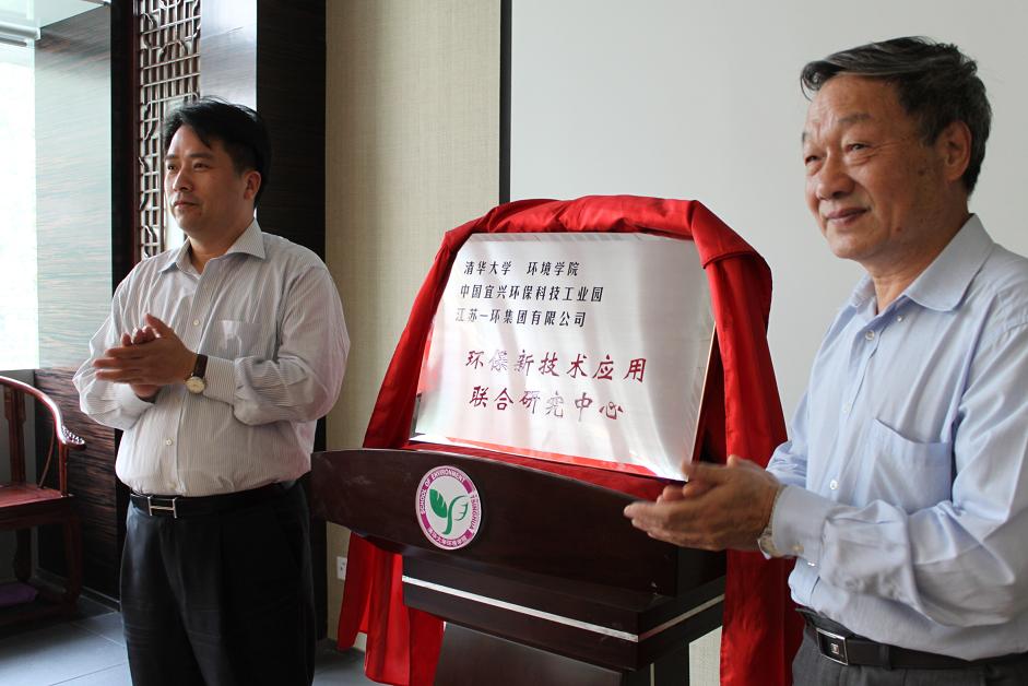 随后,岑章志教授和宜兴市环科园管委会主任朱旭峰共同为中心揭牌。