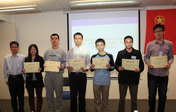 其后,环境学院党委研究生工作组组长孙傅老师宣读了2010-2011学年度环境学院党委关于表彰研究生先进个人的决定,授予方国锋等6人环境学院优秀学生干部标兵称号,授予王欢欢等25人环境学院优秀学生干部称号,授予齐学谦等23人环境学院优秀团员称号,授予谢淘等15人环境学院优秀志愿者称号,授予邢秀娟等10人环境学院实践先进个人称号。