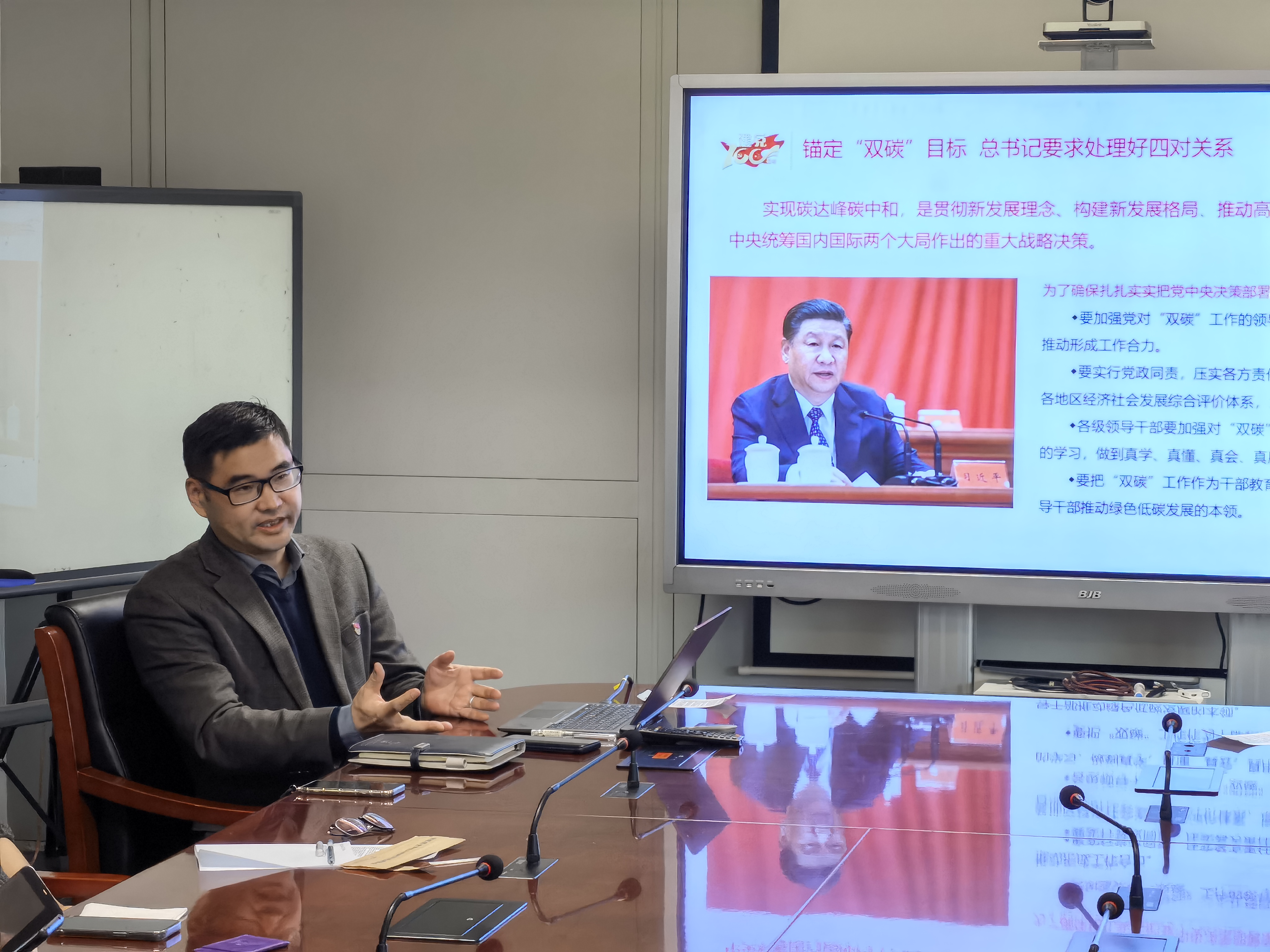 会上,鲁玺以“锚定双碳目标”为主题为支部党员讲党课,带领大家共同学习习近平总书记在中共中央政治局第三十六次集体学习的讲话精神,从“一个判断”“四个迫切需要”“四对关系”“六项部署”等方面为大家深刻解读了讲话精神。