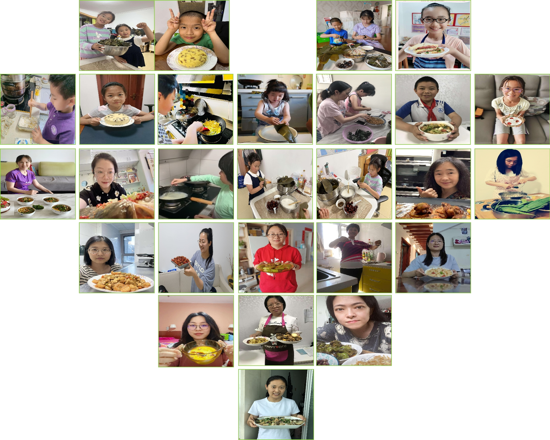 活动中,大家将一份份普通的食材烹饪成一道道精美的菜肴,剁椒鱼头、糖醋排骨、麻辣小龙虾、西北臊子面、美味粽子……同时,本次活动也吸引了许多教职工子女的积极参与,孩子们主动下厨,为家人炒菜、做早餐,与父母一起包粽子,其乐融融,既锻炼了劳动能力,也体会到了劳动带来的快乐和满足。