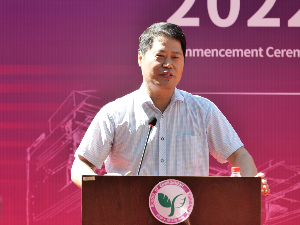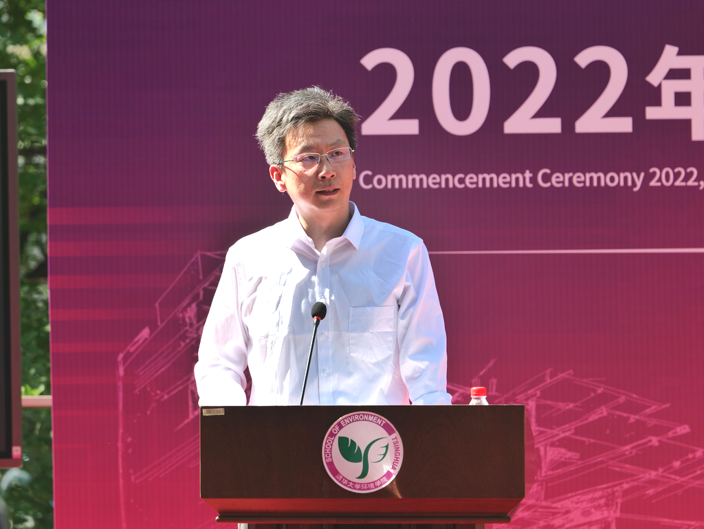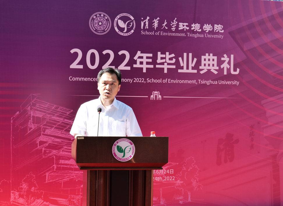 刘毅在总结致辞中对学院所有毕业生表示热烈的祝贺,并对帮助和支持同学们成才成长的老师、家长和亲友们表示感谢。他充分肯定了学院2022届毕业生自强不息、追求卓越的优秀品质和获得的成长,期待同学们在新的人生征程上取得更大进步,收获更多成绩。他勉励同学们面对百年变局与世纪疫情交织的复杂世界,要看清自己所处的历史方位,理解自己将要融入的社会,进而更好地规划自己人生的格局、更好地把握自己人生的方向。他希望同学们能继承和发扬清华环境人的优良传统,面向国家和社会需求,将所学知识转化为解决实际问题的创新能力,努力成为伟大时代绿色变革的见证者、推动者,在平凡岗位上做出不平凡的事业。