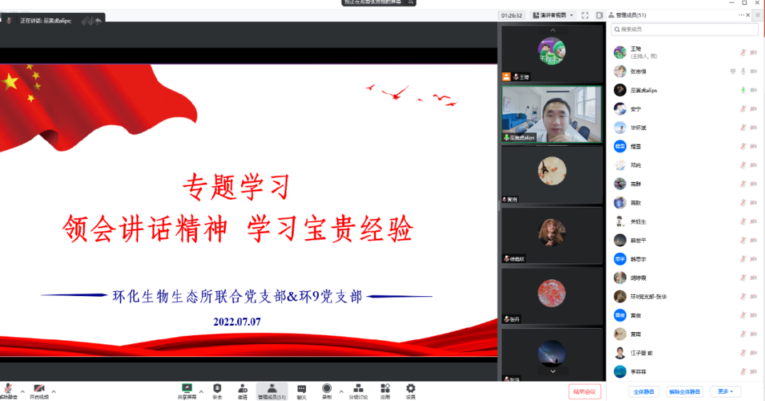 江南网页版2022年7月9日电(通讯员 王琦)7月7日下午,环境学院环化生物生态联合党支部与本科生环9党支部开展了“学讲话,守初心,战疫情,共迎党的二十大”师生联合主题党日活动,深入开展理论学习交流,共迎党的二十大胜利召开。活动由环化生物生态所联合党支部书记巫寅虎主持。