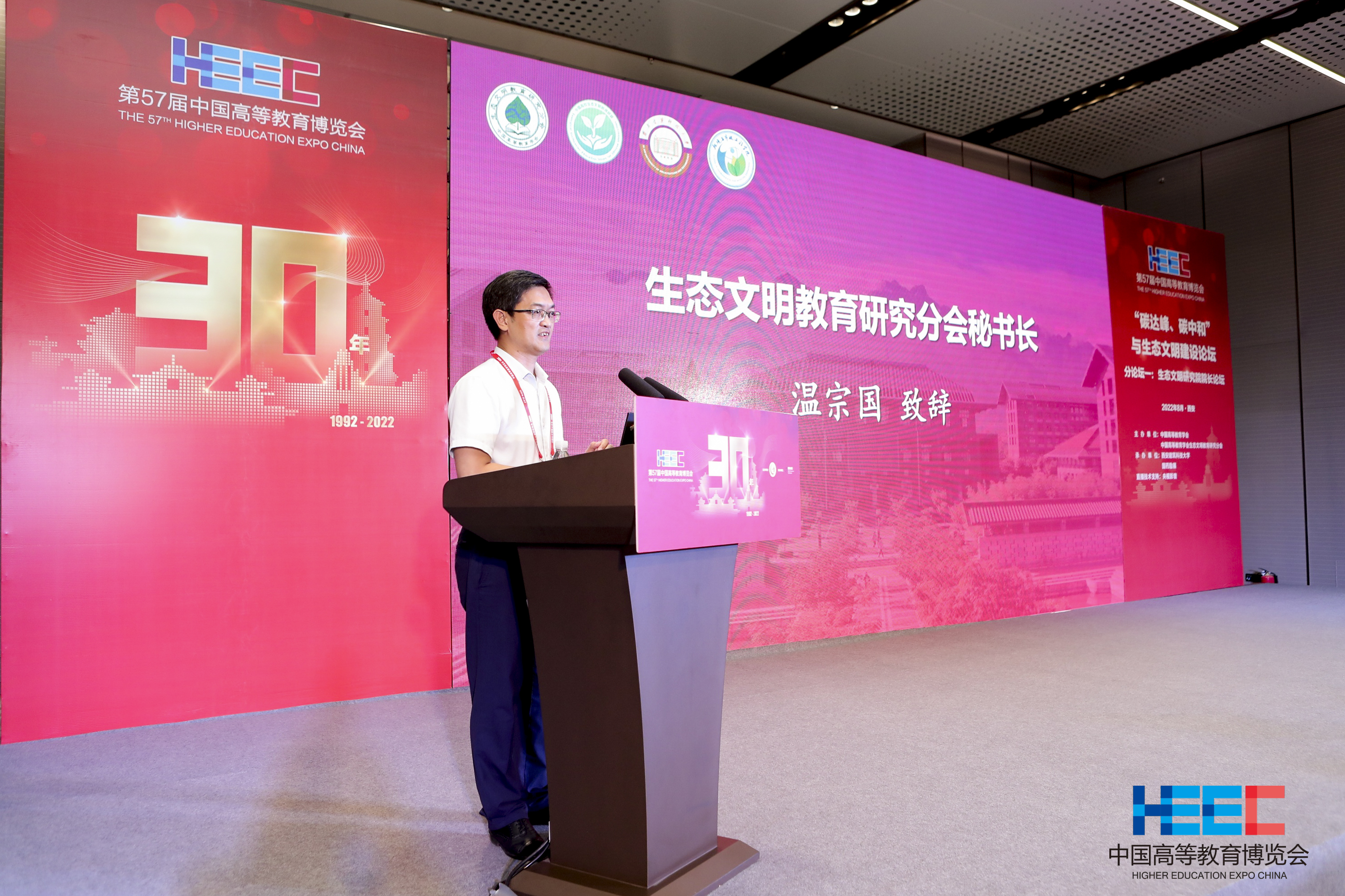 温宗国在致辞中指出,“生态文明研究院院长论坛”是中国高等教育学会生态文明教育研究分会的特色品牌活动,为大家讨论生态文明建设相关教育教学、人才培养等议题,分享各自工作成果提供了交流平台;过去三届院长论坛取得了显著成效。他鼓励各生态文明研究院、各会员单位以灵活方式承办论坛,积极申报学会的自设课题,联合开展生态文明教育和科普等系列活动。同时,他欢迎社会各界人士关注生态文明教育研究分会,加入分会,共同推进生态文明建设,为建设美丽中国作出应有贡献。