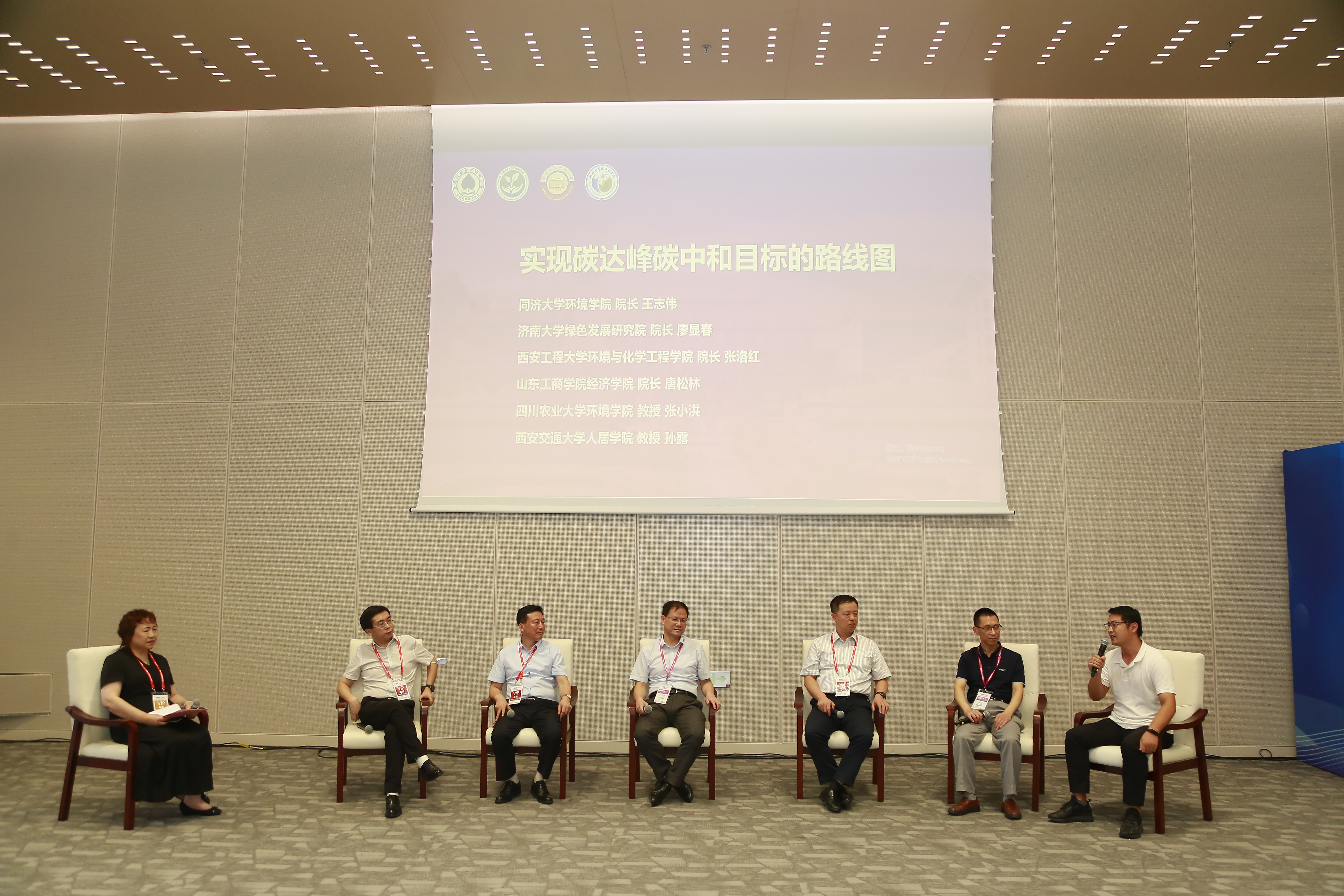 报告结束后,论坛进行了圆桌论坛对话环节,对话由冯玉杰主持。同济大学环境学院院长王志伟教授、济南大学绿色发展研究院院长廖显春教授、西安工程大学环境与化学工程学院院长张洛红教授、山东工商学院经济学院院长唐松林教授、四川农业大学环境学院张小洪教授、西安交通大学人居学院孙露教授参加对话。与会专家就“实现碳达峰碳中和目标的路线图”这一主题,进行了热烈讨论。参会代表也积极提问发言,与专家学者们碰撞出创新的火花,进行了一场精彩的头脑风暴。