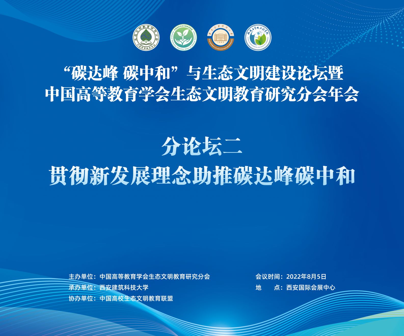 江南网页版2022年8月9日电(通讯员 胡雯 姜爱娜)8月5日下午,“贯彻新发展理念助推碳达峰碳中和”论坛在西安国际会展中心成功举办。该论坛是“碳达峰 碳中和”与生态文明建设论坛暨中国高等教育学会生态文明教育研究分会年会的分论坛之一,由中国高等教育学会生态文明教育研究分会主办,西安建筑科技大学承办,中国高校生态文明教育联盟协办。该论坛以线上线下结合的方式召开,来自近100个单位的150位代表现场参会,超过130万人次通过央视频在线上观看直播。
