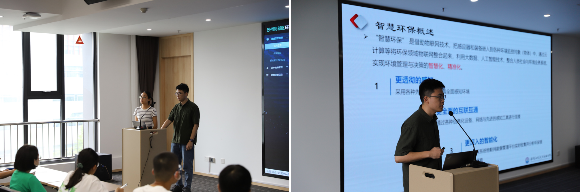 中午,环境大数据科学中心工程师周宇和刘娜为同学们介绍并展示了苏州高新区环境大数据挖掘应用平台,为同学们讲解了人工智能+大数据在环境执法与综合治理方面的广泛应用。
