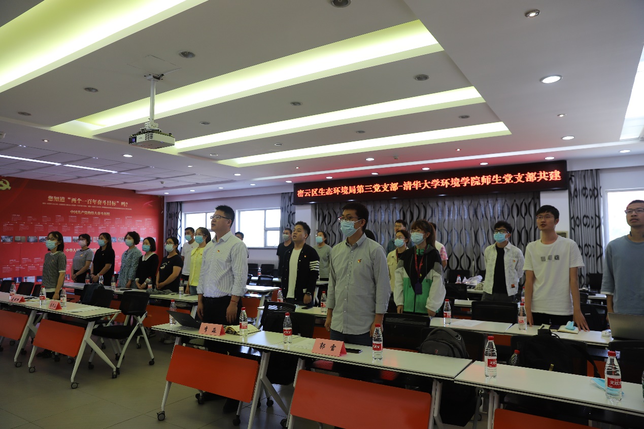 密云区生态环境局党员与清华环境学院师生共唱《国际歌》,在对巴黎公社战士崇高共产主义理想的热情讴歌中,全体人员再度振奋精神,激励自己。