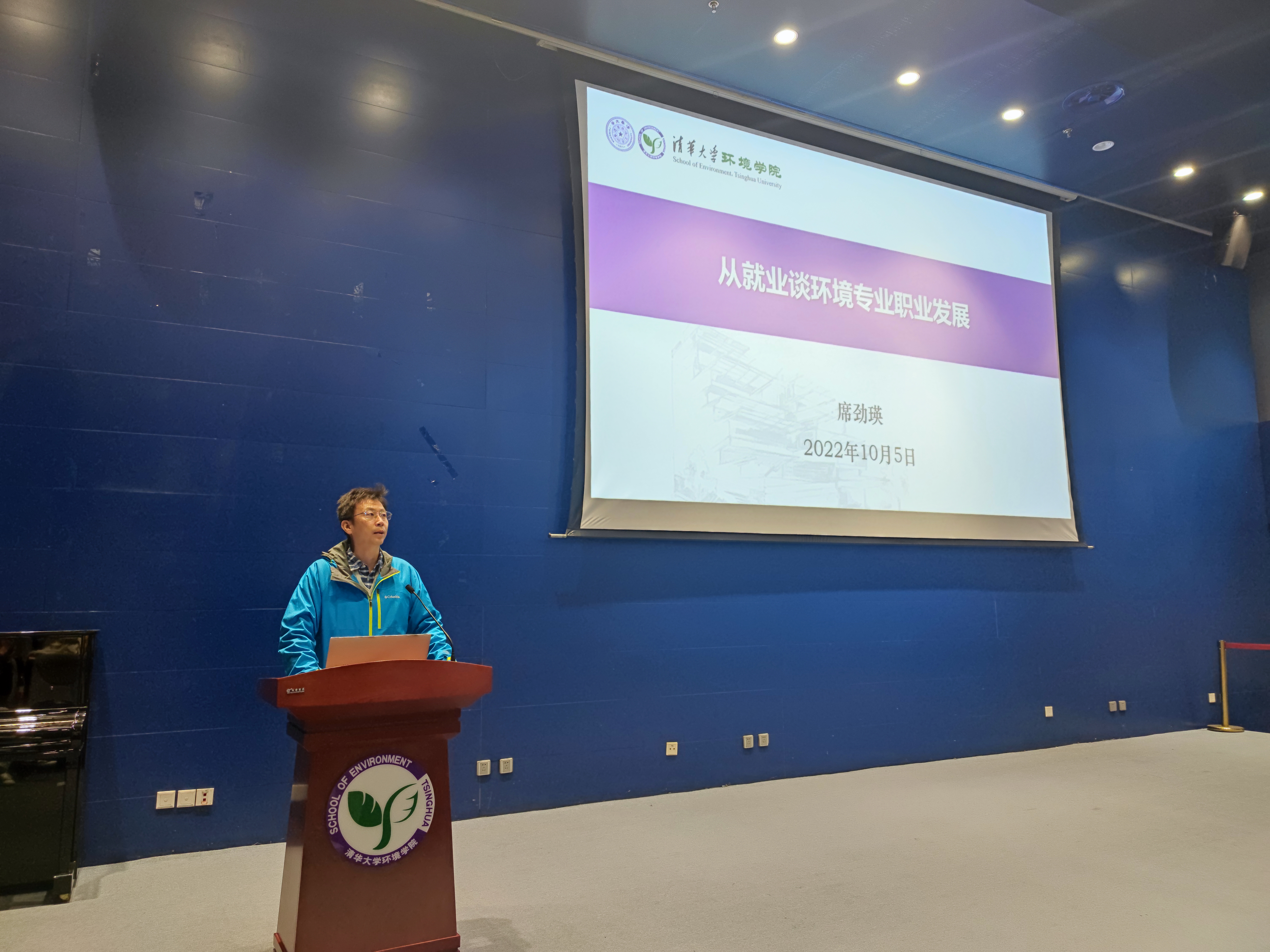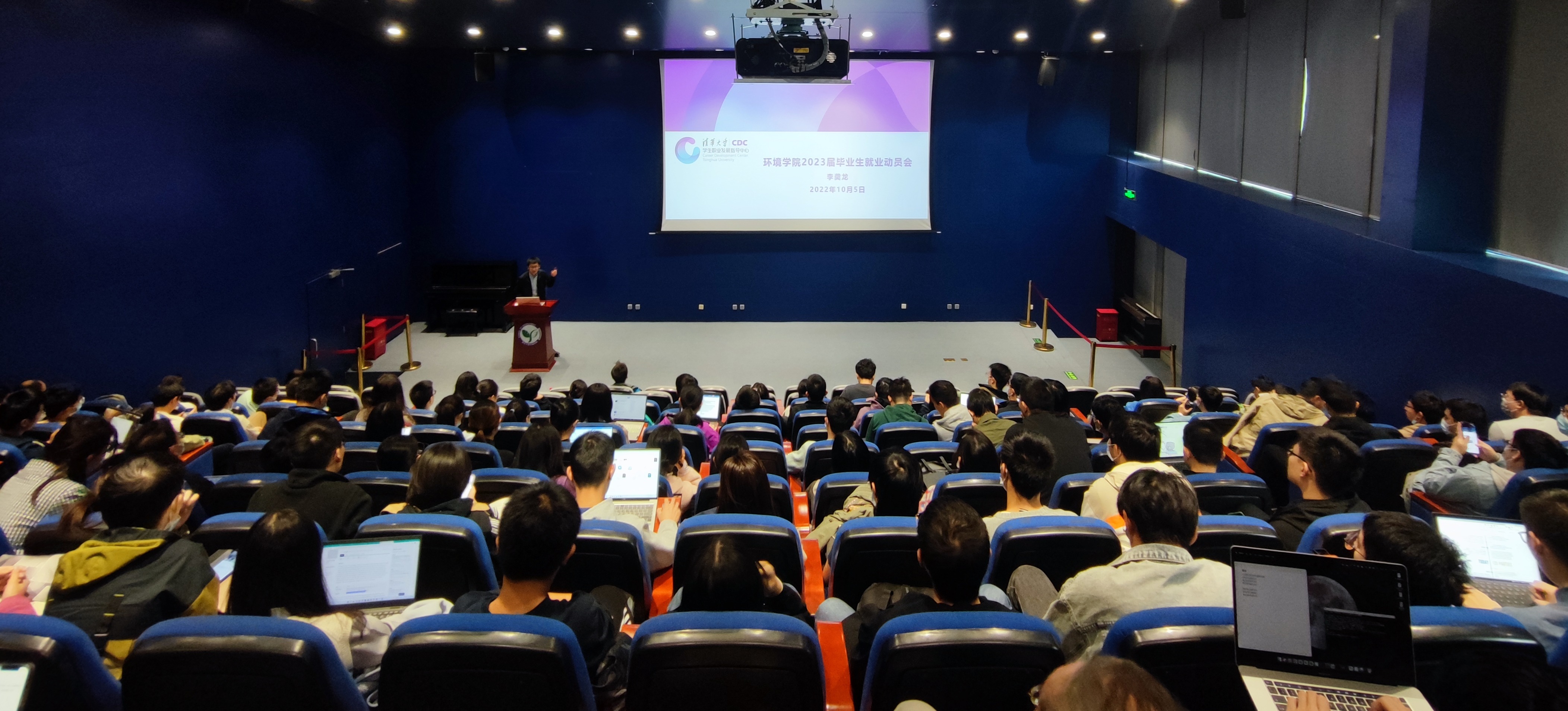 席劲瑛介绍了近五年来环境学院毕业生的总体情况,对毕业去向、地域分布、单位性质等进行了分析,梳理了学院近年来开展的就业引导工作,特别介绍了2022年新推出的环境学院“校友导师计划”,以及将于2023年启动评选的院设“启航奖学金”。他鼓励同学们向优秀校友学习,强调责任担当与勤奋努力,在读过程中要增强专业本领、提升专业能力,在充分了解社会和行业发展形势的基础上,选择适合自己的职业方向,避免盲目跟风和眼高手低,要利用好校内外各种资源,做好充分的就业准备。