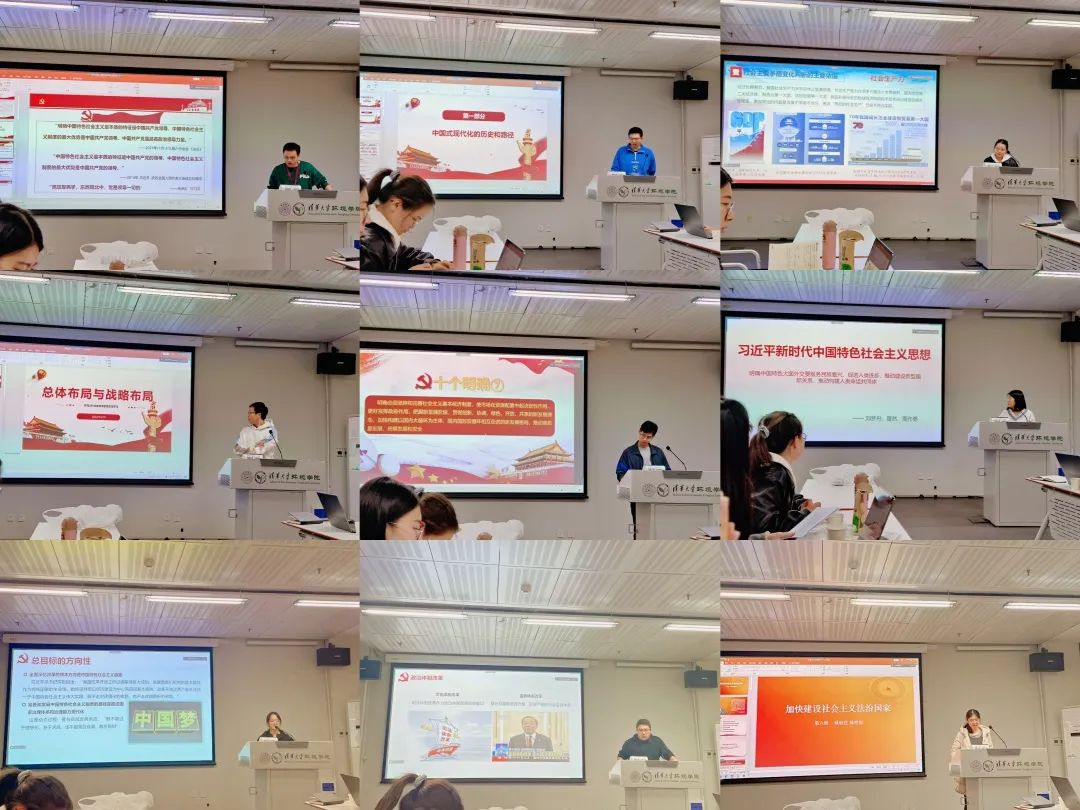 接着,同学们依次分享了“十个明确”核心内容的学习成果。冯伯阳、张戈辉、方尚飚小组解析了中国式现代化的历史与路径,介绍了“两步走”战略目标的内在含义;利用九个现代化指标对比了中国与高收入国家的差距,加深了同学们对于我国目前社会主义现代化的认识;结合具体案例比较中外现代化道路,体现了中国式现代化的优势。耿钰萱、陈明如小组详细介绍了中国特色社会主义法治道路的核心要义,通过对民法典的生动讲解,让同学们认识到法律体系的构建正是在保障人民权利,在“民”与“法”之间彰显为民情怀。唐楚、朱柯桦、周作勇小组从三个问题出发深入浅出地讲解了党在新时代的强军目标,强调了党的绝对领导和军事政策制度改革的重要性,并结合丰富的军事案例剖析了新时代人民军队的使命任务。其他小组也对各自负责的部分进行了认真的学习和分享。党支部成员表示,通过这次分组交流学习活动,对“十个明确”的精神内涵有了更加清晰的把握。