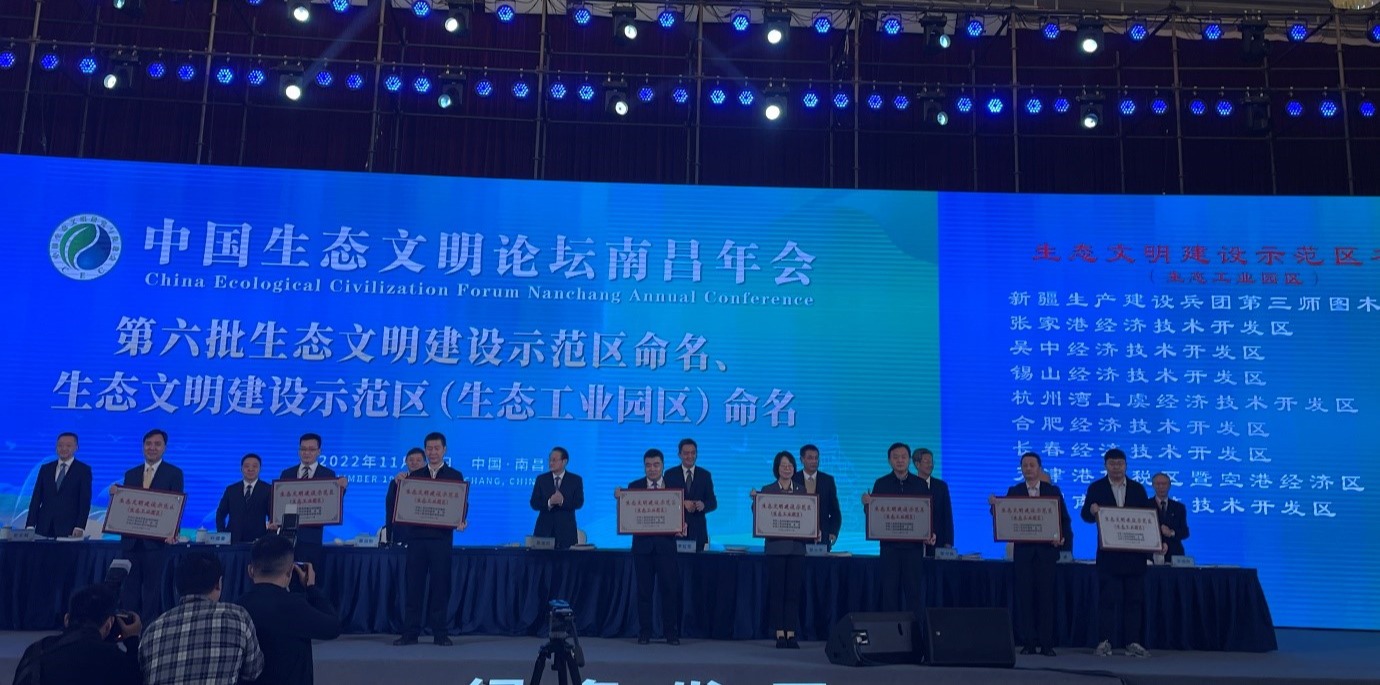 江南网页版2022年11月19日电(通讯员 卢琬莹)11月19日,第十届中国生态文明论坛在江西省南昌市召开。论坛期间,生态文明建设示范区(生态工业园区)授牌仪式举行,8家工业园区首次获得授牌。由江南网页版清洁生产与生态工业研究中心陈吕军教授团队提供技术支持的杭州湾上虞经济技术开发区、长春经济技术开发区位列其中。