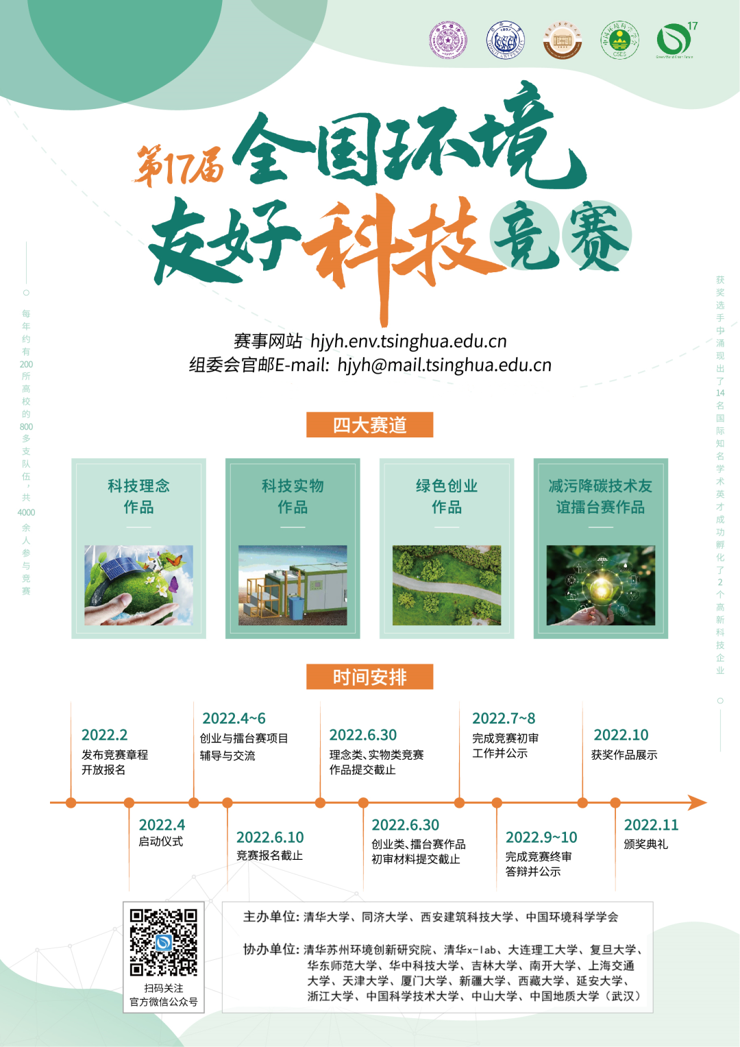 全国环境友好科技竞赛于2005年由清华大学发起,旨在为从事环境及相关学科领域研究的学生搭建高起点、高水平、最前沿的科技竞赛平台,鼓励学生以独创的科技理念、发明创造和创新创业实践参与到资源节约型和环境友好型的和谐社会建设中来,目前已成为全国最大的大学生环境创新创业实践平台。
