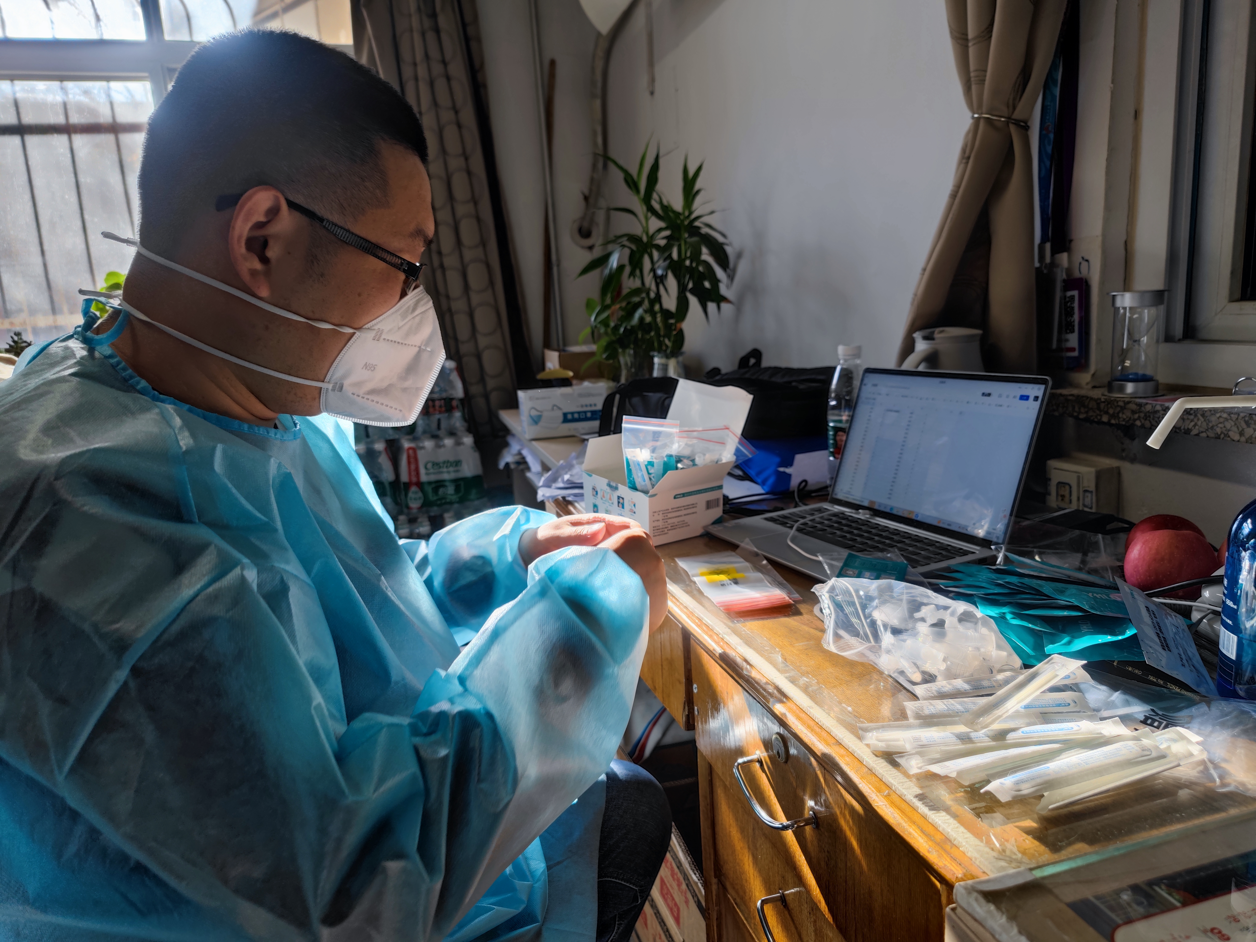 在14号楼西的保障工作中,李惠南、穆红梅作为女将和张浩、闫晗等轮番上阵,疫情防控最困难的时候连续日夜驻楼工作近10天,用自己的细心细致为同学们保驾护航。在驻楼的第一天,李惠南就与张浩为所有感染的同学建立了微信群,并建立了实时文档,不仅极大地提高了统计效率,也便于及时满足同学们的各种需求。李惠南主要负责药物需求的统计。为保证同学们科学用药,有药物需求的同学需要加李惠南的个人微信,李惠南再将药品说明书和用药注意事项发送给学生,收到学生们的阅读反馈后才能给学生登记药品需求,然后由张浩负责发放。在统计过程中,药品需求人数很多,李惠南经常在十几个聊天窗口界面切换完成信息的反馈和记录。后来,在工作人员减员严重的阶段,李惠南又参与了送餐服务工作。后续,穆红梅接替了李惠南的工作,继续将这份坚持与细致传递了下去,为保障同学们健康付出了努力与汗水。