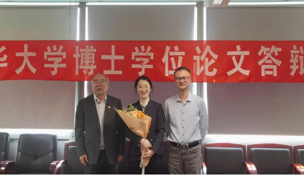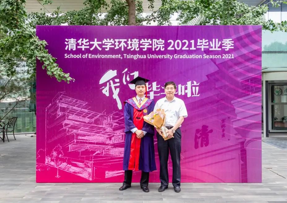 梁馨予与导师郝吉明教授(左一)、副指导教师吴烨教授(右一)