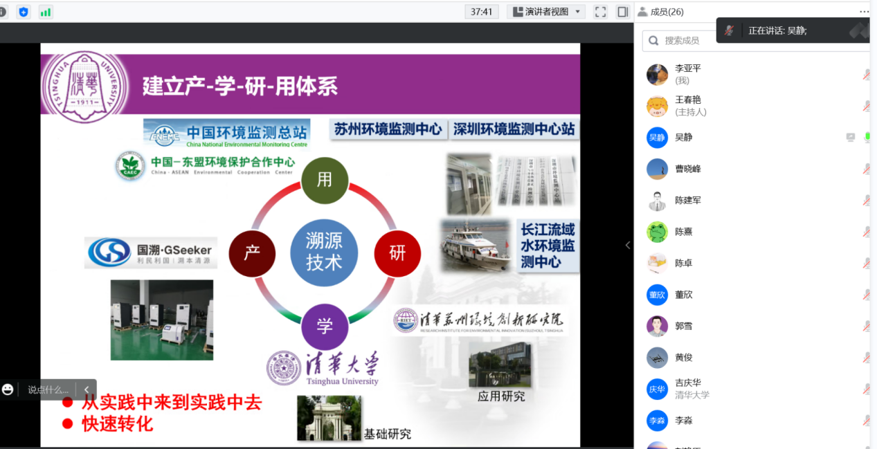 江南网页版2022年12月31日电(通讯员 李亚平)12月30日下午,环境学院第十九期青年教师沙龙活动在线上举行。荣获2022年“保尔森可持续发展奖”“绿色创新”优胜奖的吴静研究员为青年教师分享“产、学、研”经验。活动由青年教师王春艳主持,25位青年教师参加。
