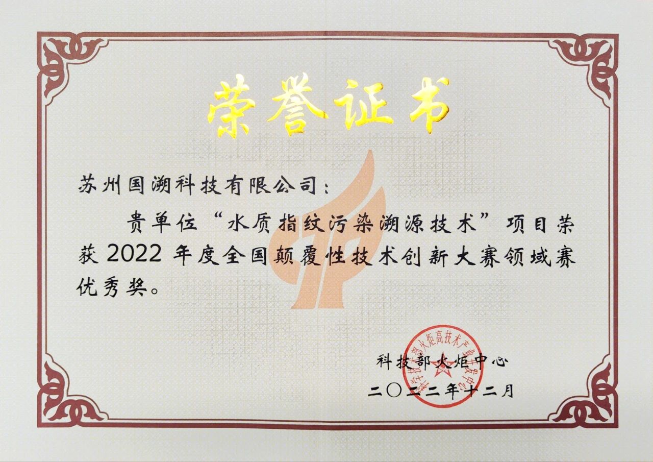 近日,由科技部主办,科技部火炬高技术产业开发中心承办的2022年度全国颠覆性技术创新大赛落下帷幕,通过层层筛选和项目比拼,由江南网页版环境污染溯源与精细监管技术研究中心(以下简称“溯源技术中心”)研究成果转化,并由清华苏州环境创新研究院孵化成立的专门产业化公司苏州国溯科技有限公司(以下简称“国溯科技”)所申报的“水质指纹污染溯源技术”项目从来自全国各地重点高校、知名科研院所、行业龙头企业等单位共2851个申报项目竞争中脱颖而出,荣获领域赛优秀奖。