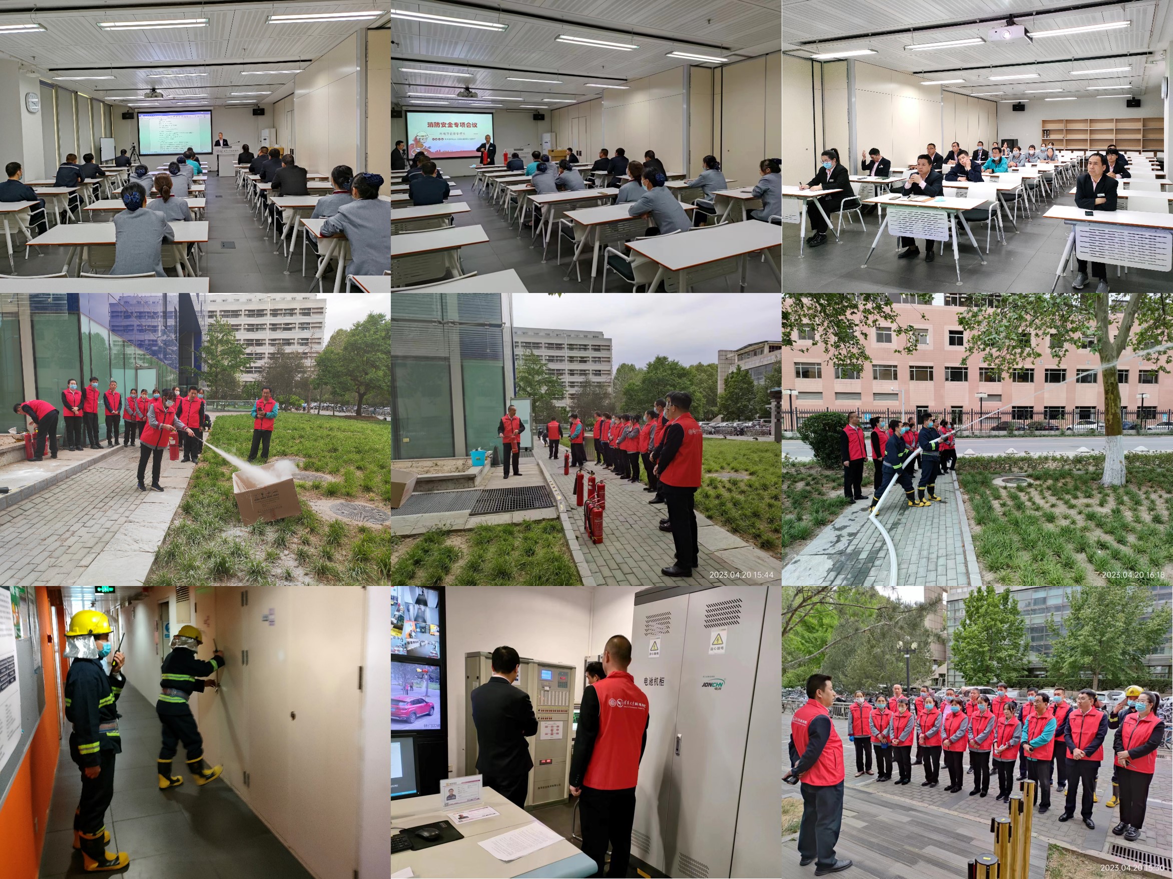 4月20日14时30分,中意清华环境节能楼启动消防疏散逃生演练及灭火训练,主要内容包括疏散演练、医疗救治演练、组织灭火演练、消防应急预案演练、干粉及二氧化碳灭火器使用练习、消火栓高压喷射体验等。