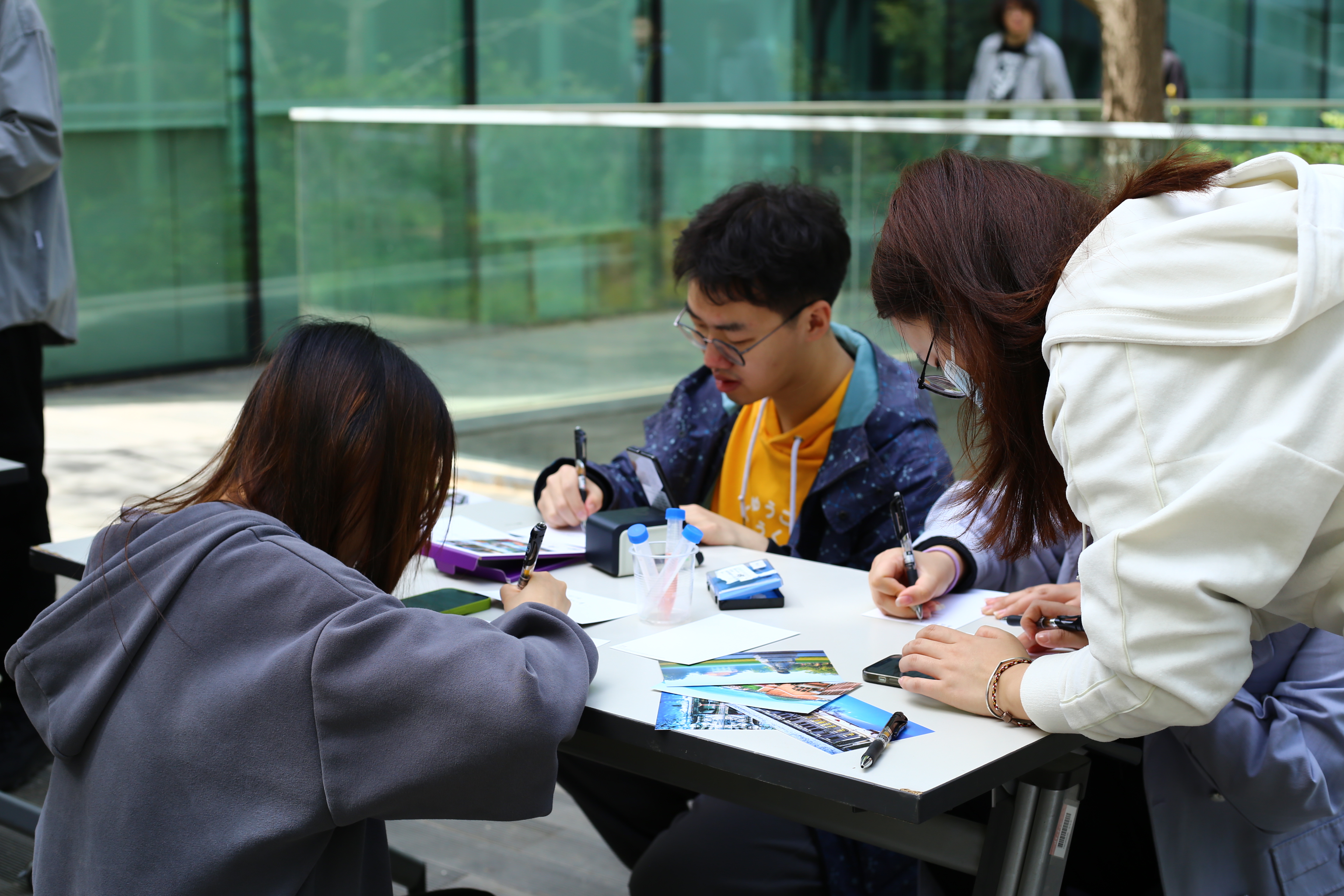 志愿者们为孩子们写祝福贺卡片