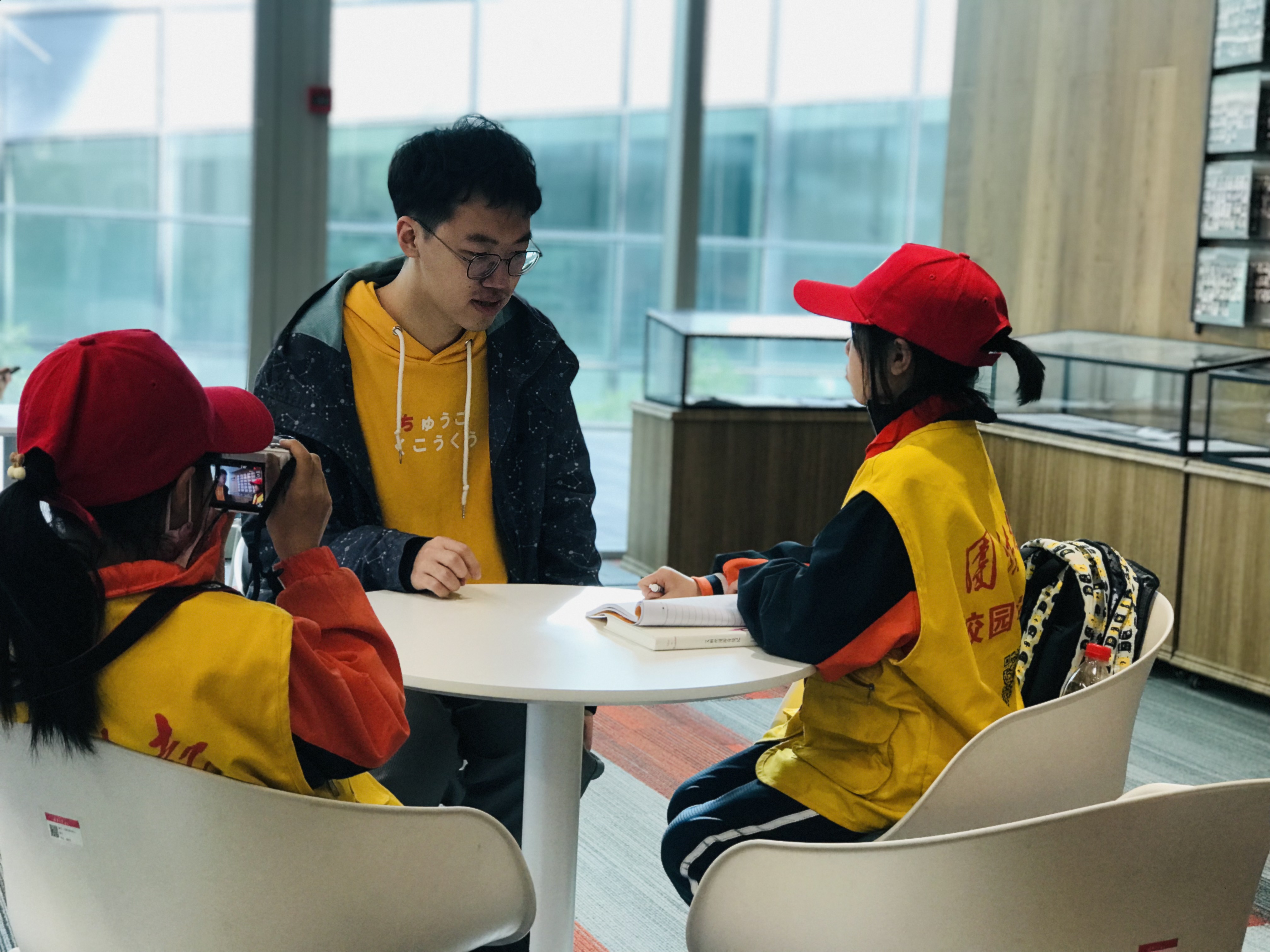 小记者对志愿者薛博元进行采访