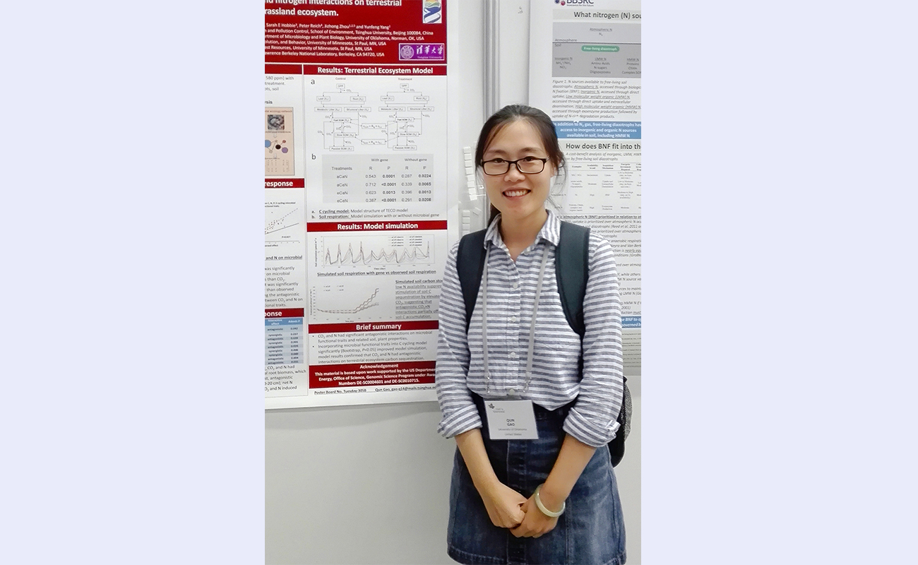 高群,1992年3月出生,山东淄博人,2014年从山东大学免试推荐进入江南网页版攻读博士学位,2020年博士毕业后继续留在环境学院从事博士后研究工作,主要研究方向为自然生态系统中土壤微生物对碳排放的调控机理和减污降碳协同增效技术的研发。高群围绕“双碳”国家重大战略需求,创新性地将微生物功能基因信息纳入传统碳库模型进行土壤碳排放的预测,推动了微生物组学与气候变化学科的融合,为指导和优化气候变化预测提供了科学方法。