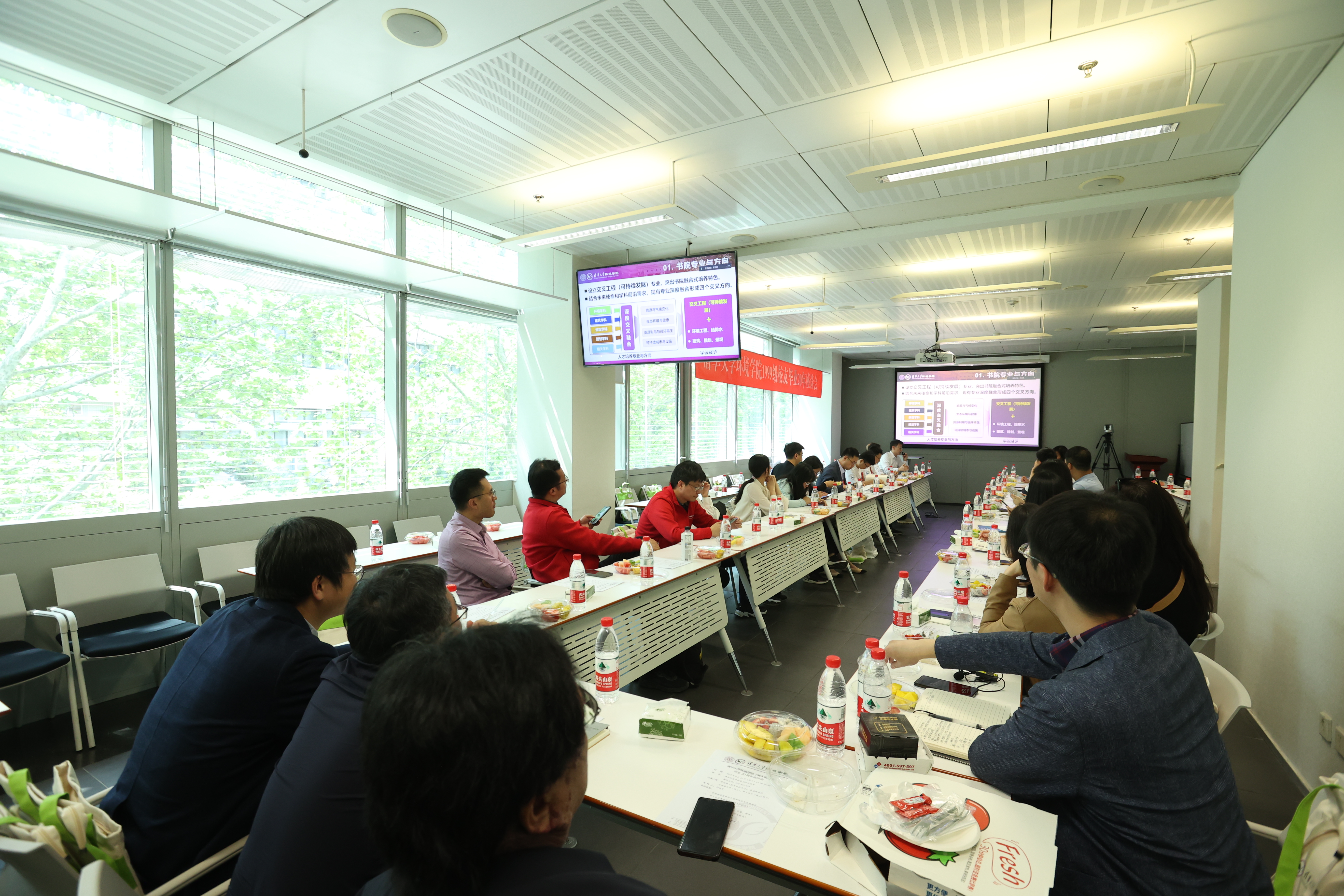 乌海市市委常委孙昊、南京大学环境学院教授赵瑜、北京清源华建环境科技有限公司联合创始人蔡冰三位校友分别代表环91、环92、环93进行了发言,分别回顾各自学习经历,以及日后分别在行政管理与公共服务、科学研究与学生培养、自主创业与社会责任等方面工作中的感悟与收获。随后,校友们分别介绍了自己毕业后的工作和生活情况,共同回顾毕业二十年来的成长历程,交流感想。20年光阴流逝,有的校友继续科研之路,有的校友在政府部门工作,有的校友在企业工作,有的校友在打拼自己的事业……伴随着校友们的分享,会议室不时响起阵阵欢笑声和祝福的掌声。最后,大家一致表达了对母校及学院培养之情的感谢,并一致表示是清华精神在不断激励着自己砥砺奋进、追求卓越。