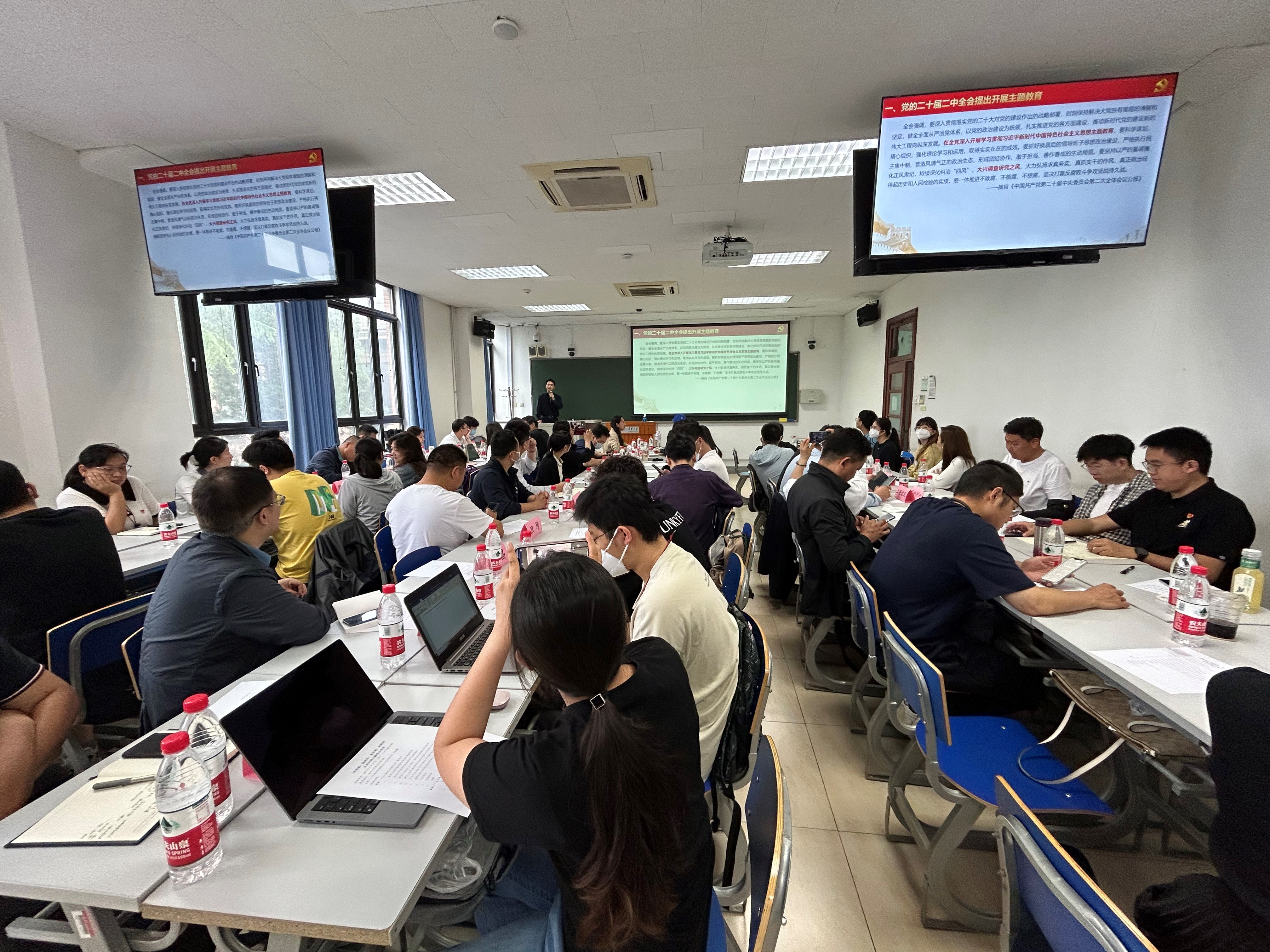 李淼介绍了环境学院党委党建工作情况和学院发展历程:在新形势下加强学生思想引领,推进“五育并举”;通过严格把关加强师德师风建设;在党建工作的关键节点,通过将党委委员联系支部和支书例会制度化常态化,强化党支部建设,增强战斗堡垒作用;通过发挥头雁的引领作用,积极创建双带头人党支部,形成带头作用;积极参与国家重大事件科研攻关与志愿服务,与国家和时代同向同行,借助历史契机强化思想教育。