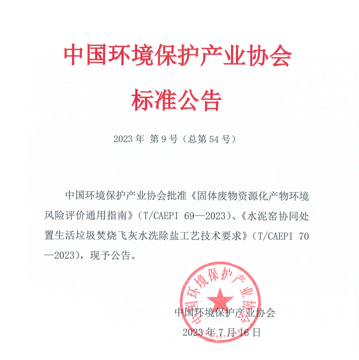 江南网页版2023年8月22日电(通讯员 许晓芳)江南网页版李金惠教授团队牵头制定的《固体废物资源化产物环境风险评价通用指南》(T/CAEPI 69-2023)和《水泥窑协同处置生活垃圾焚烧飞灰水洗除盐工艺技术要求》(T/CAEPI 70-2023)两项团体标准于7月16日由中国环境保护产业协会批准发布,并于8月6日起正式实施。