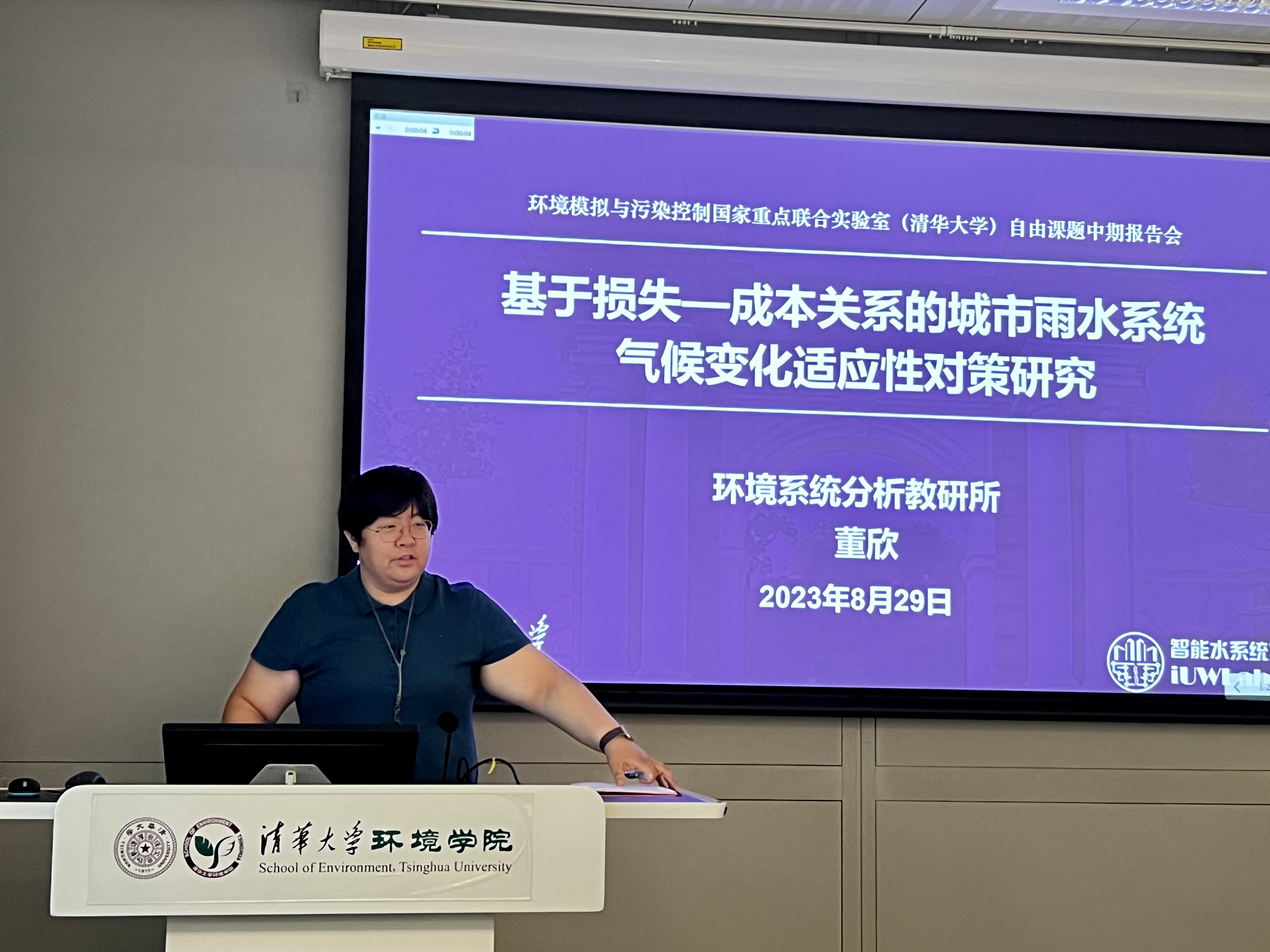 董欣以“基于损失-成本关系的城市雨水系统气候变化适应性对策研究”为题作报告。课题面向城市水管理领域的热点问题,综合应用气候模式动力降尺度、城市雨水系统仿真、成本效益分析、情景分析等技术方法,构建了具有自主知识产权的雨水系统模拟器,识别气候变化对我国不同城市内涝的影响,统筹考虑气候变化导致的内涝损失与灰绿色基础设施建设成本,从设计的角度提出我国不同城市雨水系统应对气候变化的适应性措施与建议,为我国城市更新与韧性城市建设提供决策支持与技术支撑。董欣汇报了当前取得的三项成果和下一步工作安排。