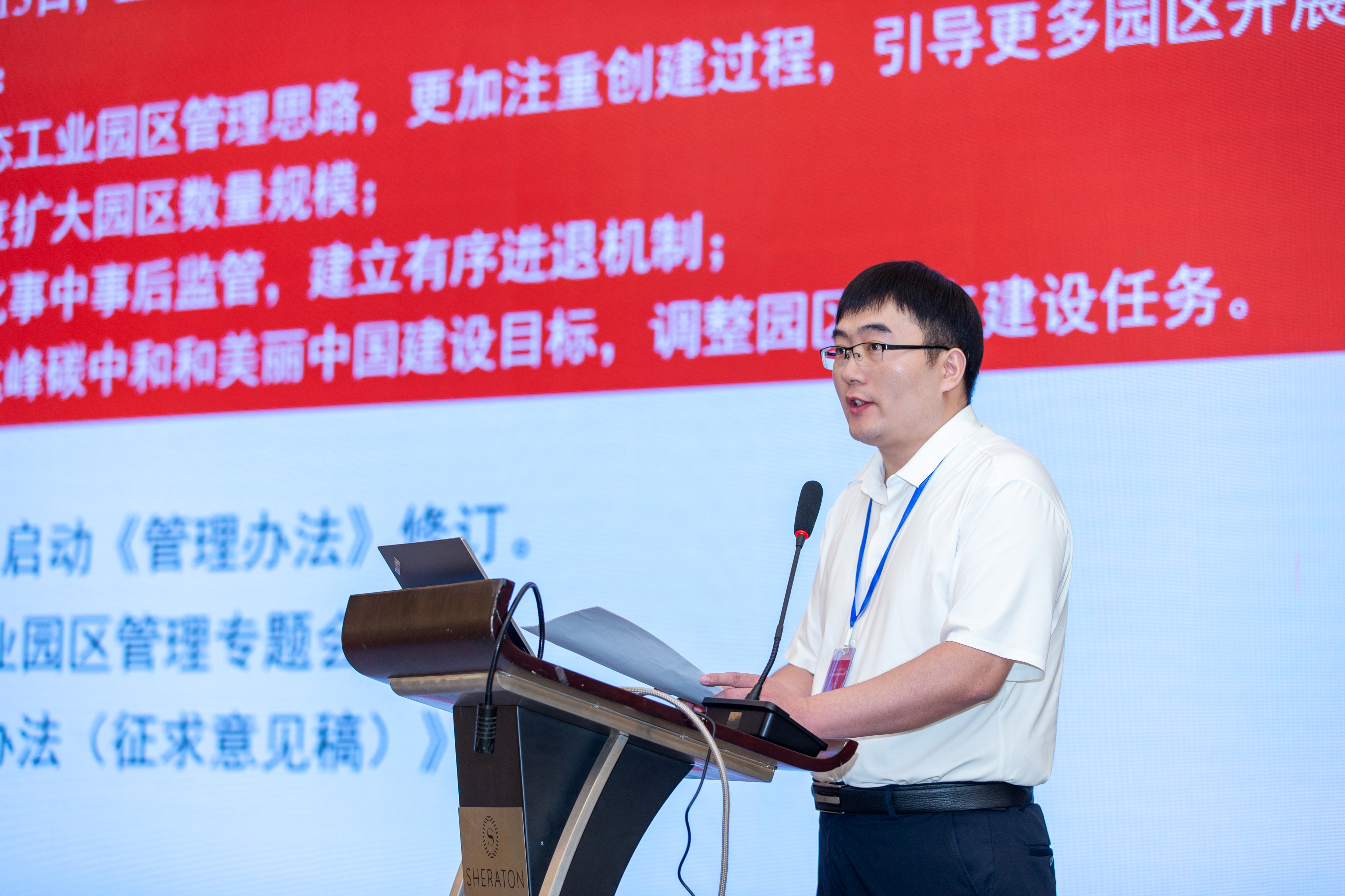 生态环境部科财司投资处四级调研员王帅就目前生态工业园区建设的管理思路进行了介绍。目前获得生态工业园区称号的共73家园区,覆盖19个省(自治区、直辖市),生态工业园区已成为环境治理能力建设的全国样板以及环境治理新技术和新机制“先行先试”示范区,也为全球工业园区绿色发展贡献了中国模式。为了进一步引导生态工业园区创建,生态环境部对现有管理办法进行了修订,截至2023年6月形成了《生态文明建设示范区(生态工业园区)管理办法(送审稿)》。
