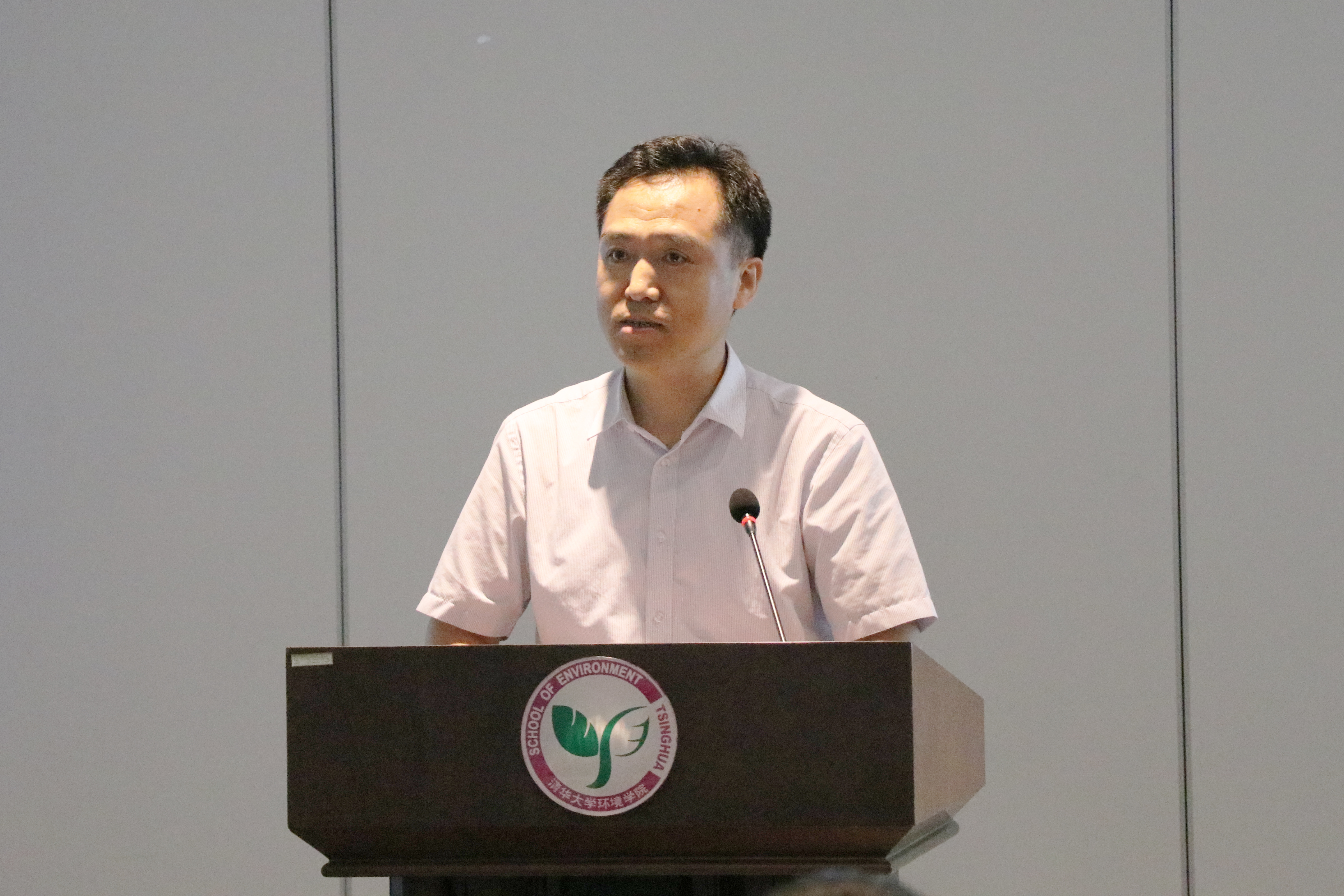 院长刘书明在致辞中对来到环境学院学习的同学们表示热烈欢迎,祝贺同学们通过不懈努力拼搏成为清华环境人的新成员,成为生态环境保护事业新的年轻力量。他提到,党的二十大报告指出,中国式现代化是人与自然和谐共生的现代化,而同学们生逢盛世,肩负着美丽中国建设历史使命。他期待在这一历史使命的驱动下,同学们能追求一流,厚植创新驱动发展绿色底色,不断提升原始创新能力,突破自身发展瓶颈、尝试攻克关键核心技术;把服务国家作为最高追求,力争为国家、为民族做出新的更大的贡献,成为生态文明建设红色人才。