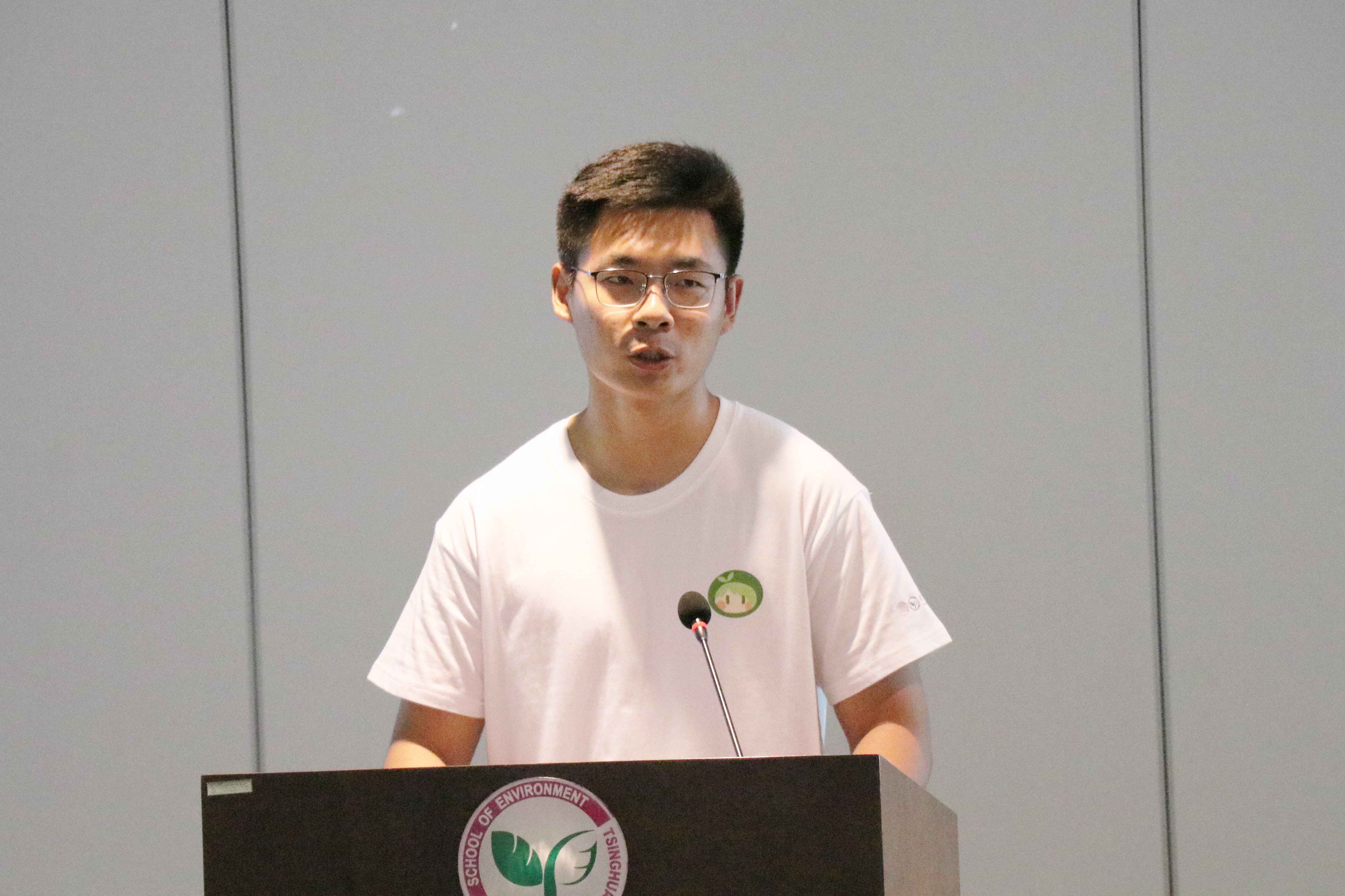 2021级博士生李晋作为在读研究生代表,用E、N、V三个字母总结介绍了自己在环境学院的经历体验,鼓励大家通过自己的研究更加深刻地认识这个世界,服务社会紧迫需求,不断实现个人价值。