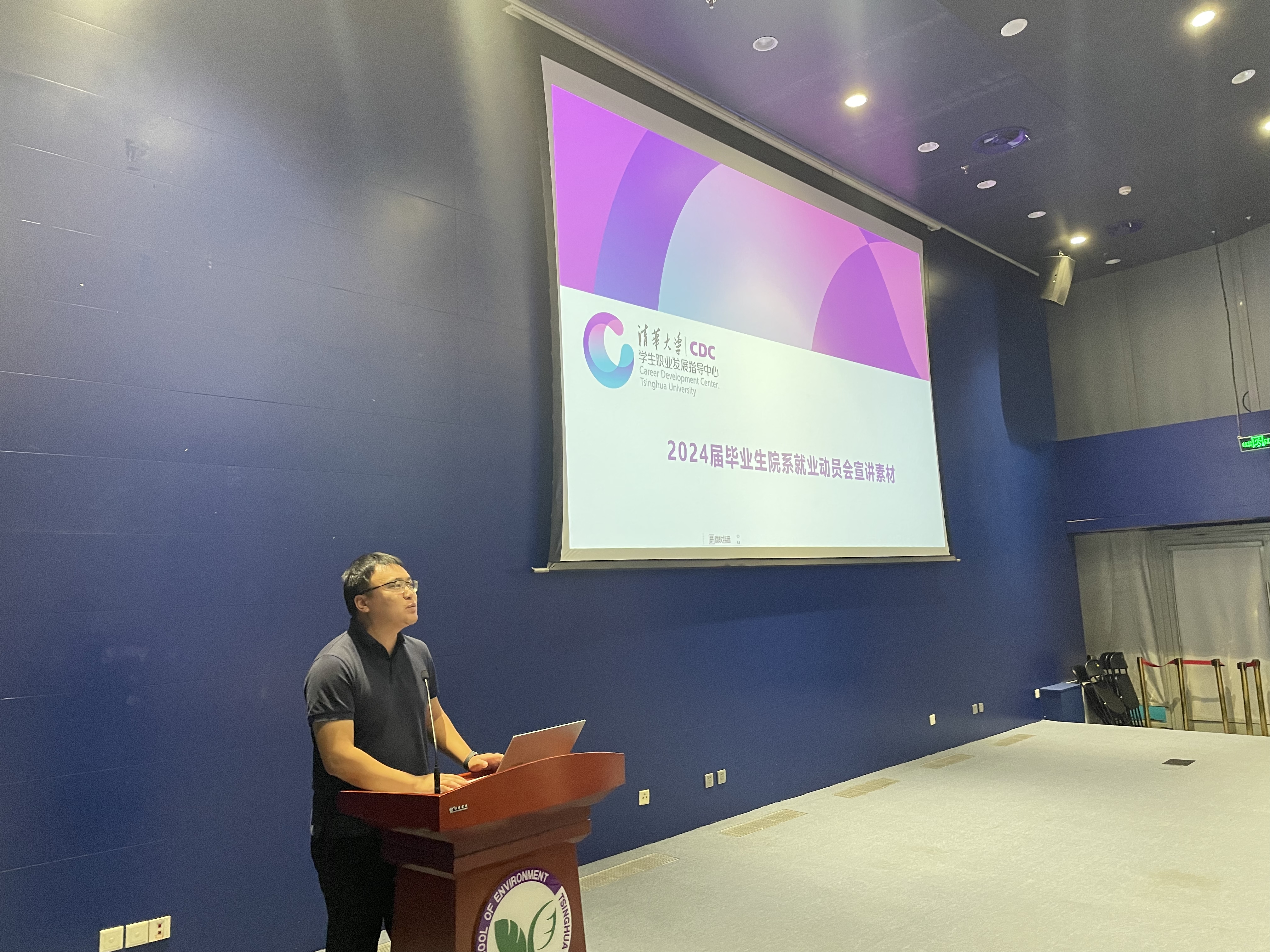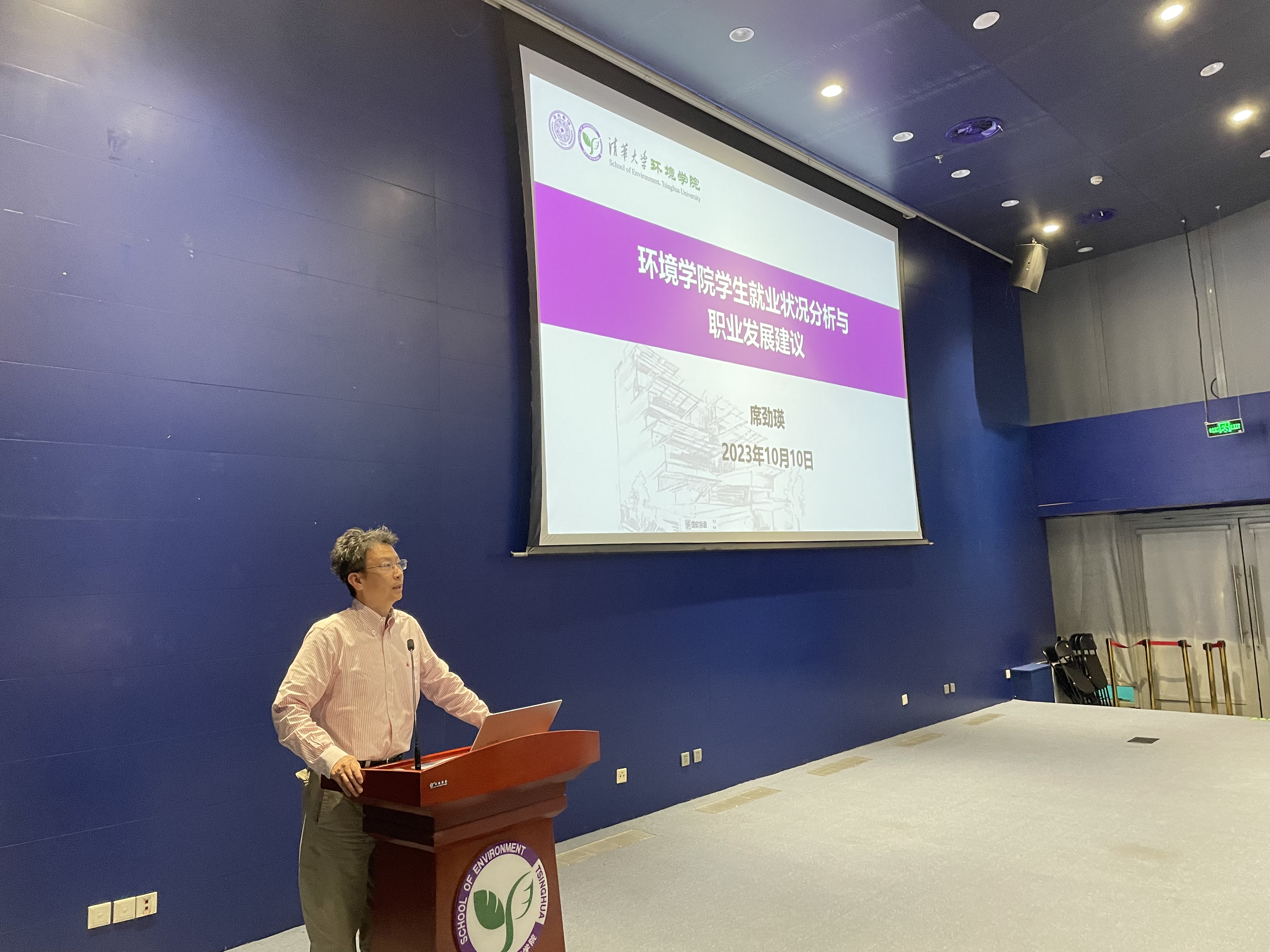 席劲瑛介绍了近五年来环境学院毕业生的总体情况,对毕业去向、地域分布、单位性质等进行了分析,梳理了学院近年来开展的具有专业特色的就业引导工作,特别介绍了环境学院“校友导师计划”咨询活动及“清环导学”报名小程序。他鼓励同学们向优秀校友学习,在读过程中积累专业本领、提升专业能力,求职时避免盲目跟风和眼高手低,要利用好校内外各种资源,做好充分的就业准备,在充分了解社会和行业发展的基础上,选择适合自己的职业方向。