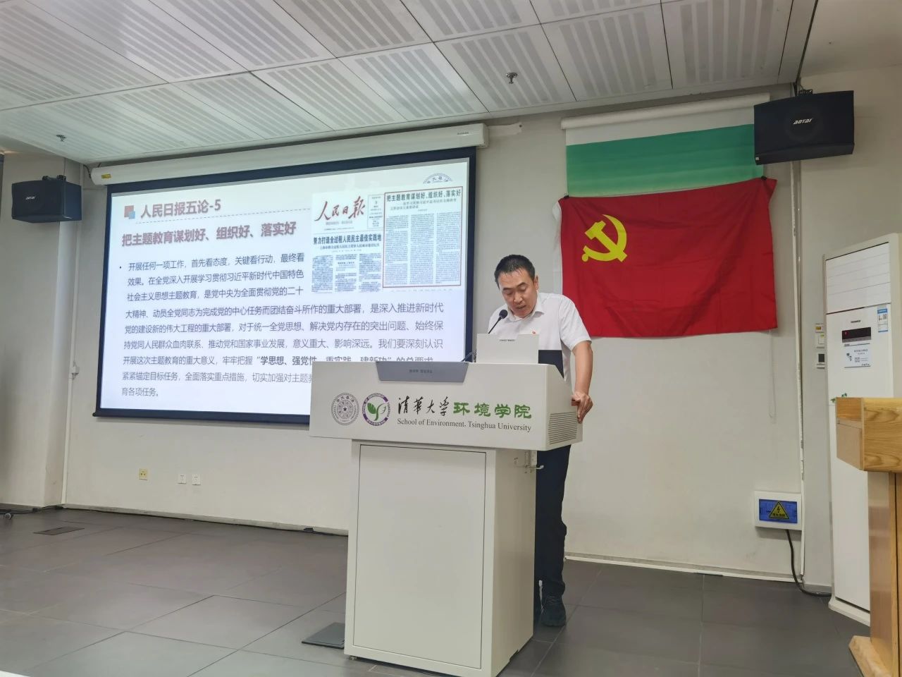 给排水土壤地下水所联合支部党支书孙文俊首先作持续深入学习贯彻习近平新时代中国特色社会主义思想的报告。报告从人民日报五论、习近平文化思想、理论创新与时代价值、坚定信仰者和忠实实践者等四个方面展开,强调“要把理论学习、调查研究、推动发展、检视整改贯通起来,有机融合、一体推进。”孙文俊还指出,作为博士研究生,不光要学习党的理论知识并将其落实到生活中,在科学研究中也应该将理论与实践相结合。在日常工作中要主动将理论研究和实际问题相联系,统筹考虑理论问题和实际问题,既要敢于突破现有理论,也要有解决实际问题的能力。
