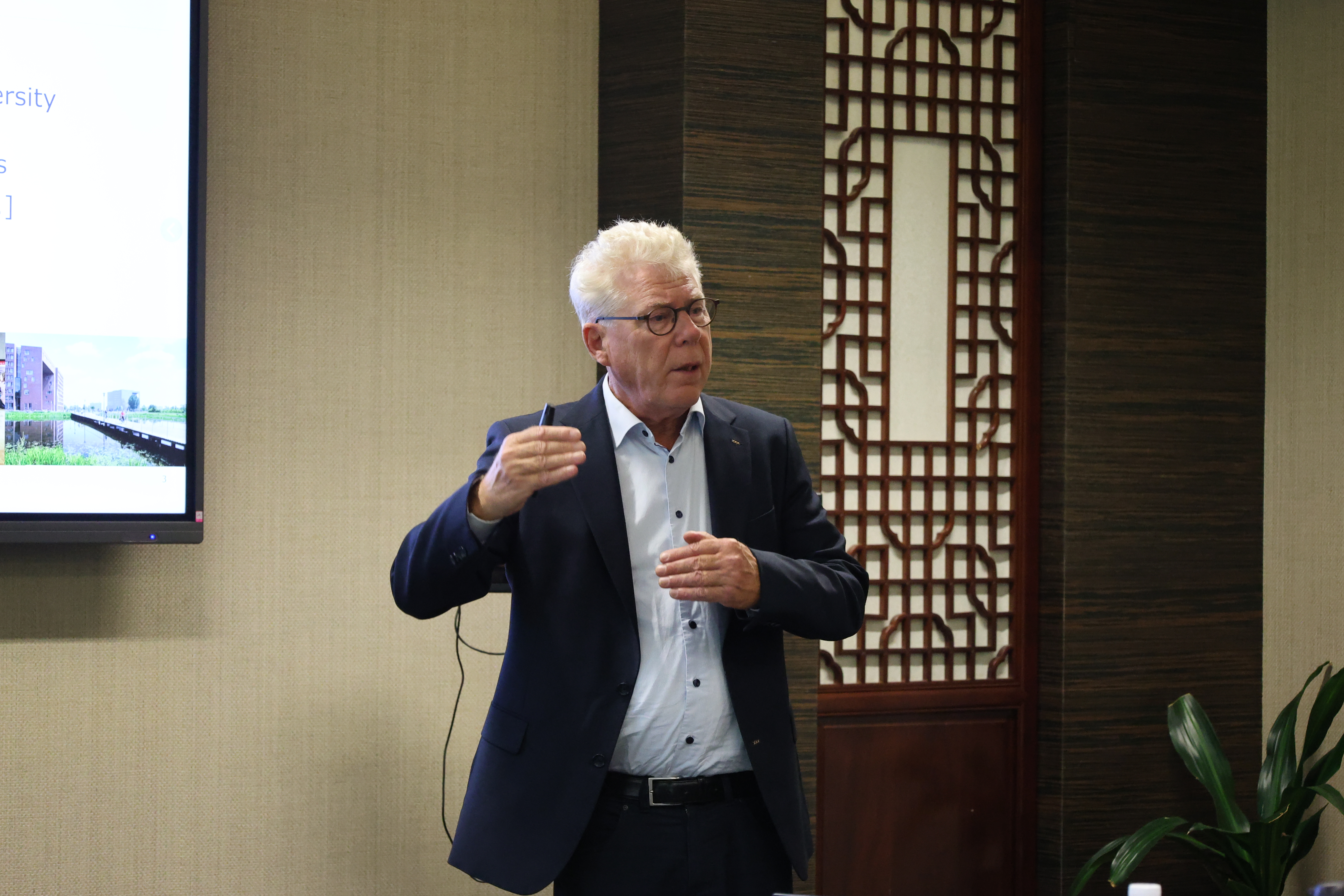 胡布·莱纳茨对瓦赫宁根大学、瓦赫宁根大学环境系、瓦赫宁根大学环境与气候研究生院作了简要介绍。此外,他还介绍了瓦赫宁根大学环境与气候研究生院与江南网页版和清华苏州环境创新研究院的博士生联合培养项目的进展情况,分析了合作过程中取得的成就、遇到的挑战和未来合作的核心诉求。他表示,该合作项目进展顺利,期待三方通过续签合作协议巩固合作基础、升级合作模式,以帮助两校培养更多环境领域的国际化领军人才。