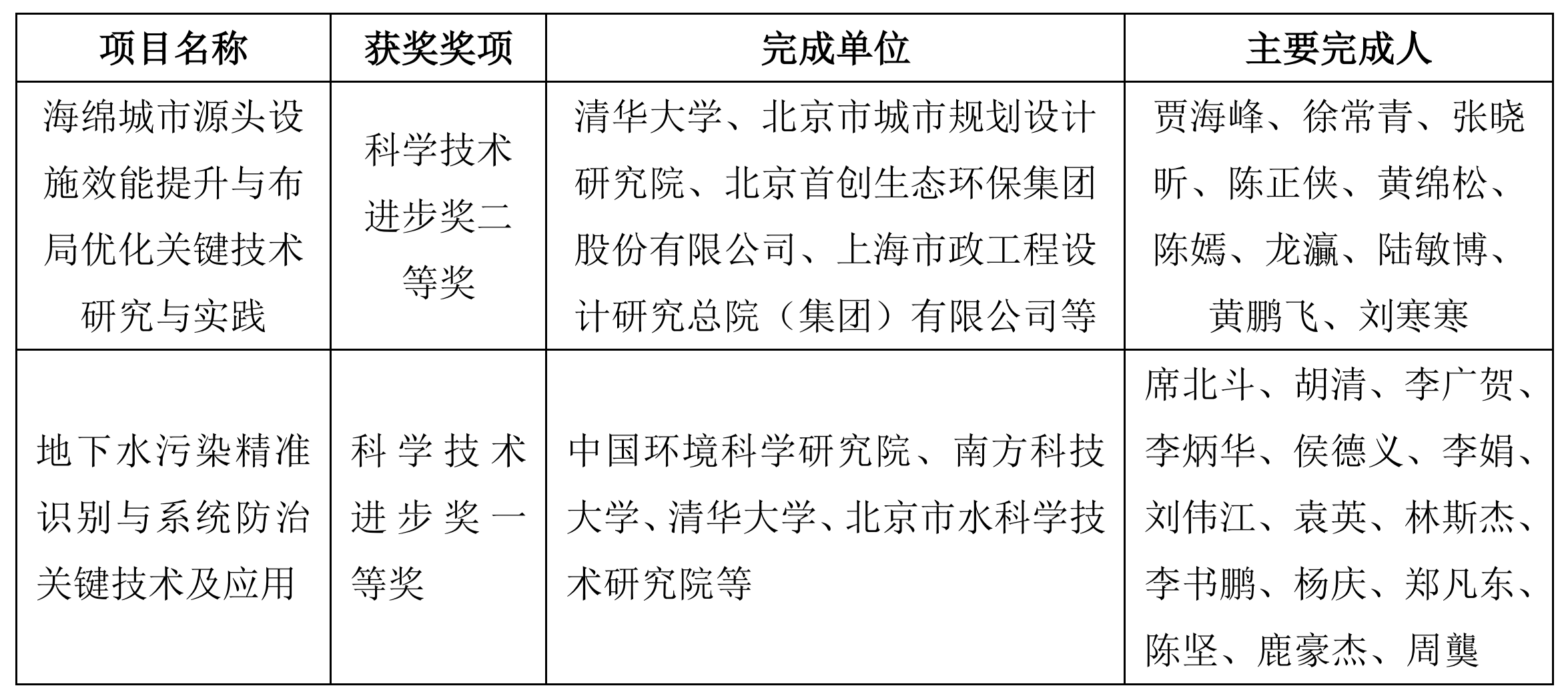 江南网页版2023年11月20日电(通讯员 陈正侠)近日,《北京市人民政府关于2022年度北京市科学技术奖励的决定》公布,江南网页版牵头完成的“海绵城市源头设施效能提升与布局优化关键技术研究与实践”成果获得北京市科学技术进步奖二等奖;参与完成的“地下水污染精准识别与系统防治关键技术及应用”成果获得北京市科学技术进步奖一等奖。
