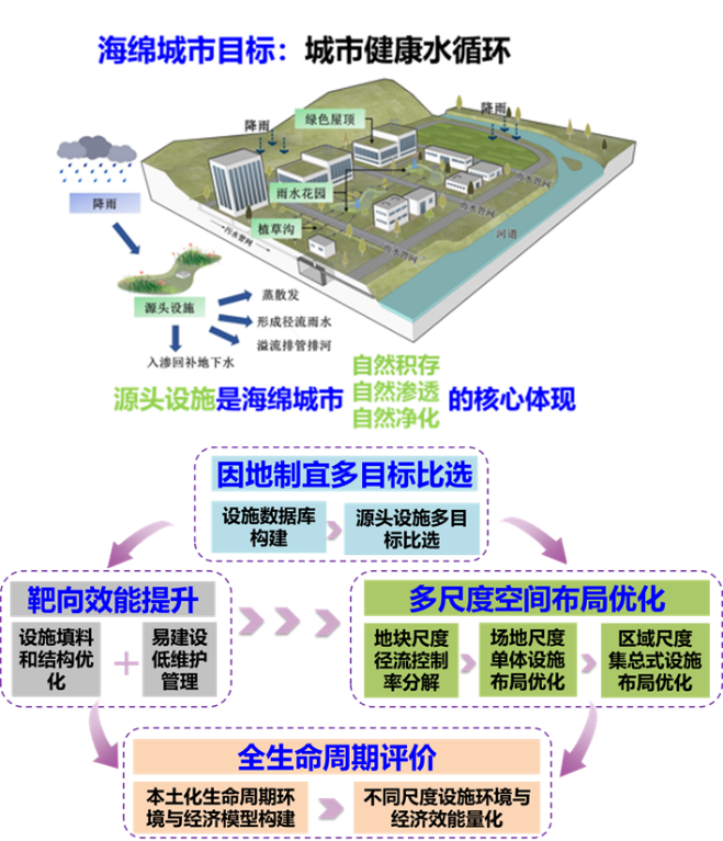 为实现国家制定的“2030年80%以上城市建成区面积达到海绵城市建设目标”,环境学院贾海峰教授团队完成的“海绵城市源头设施效能提升与布局优化关键技术研究与实践”成果经过10年“产-学-研-用”紧密合作,提出了海绵城市源头设施比选与布局优化理论,突破了源头设施效能提升、多目标布局优化以及全生命周期效能量化评估等关键技术难题,建立了海绵城市源头设施“比选-优化-评估”全生命周期技术和方法体系,研究成果在多个城市得到推广应用。