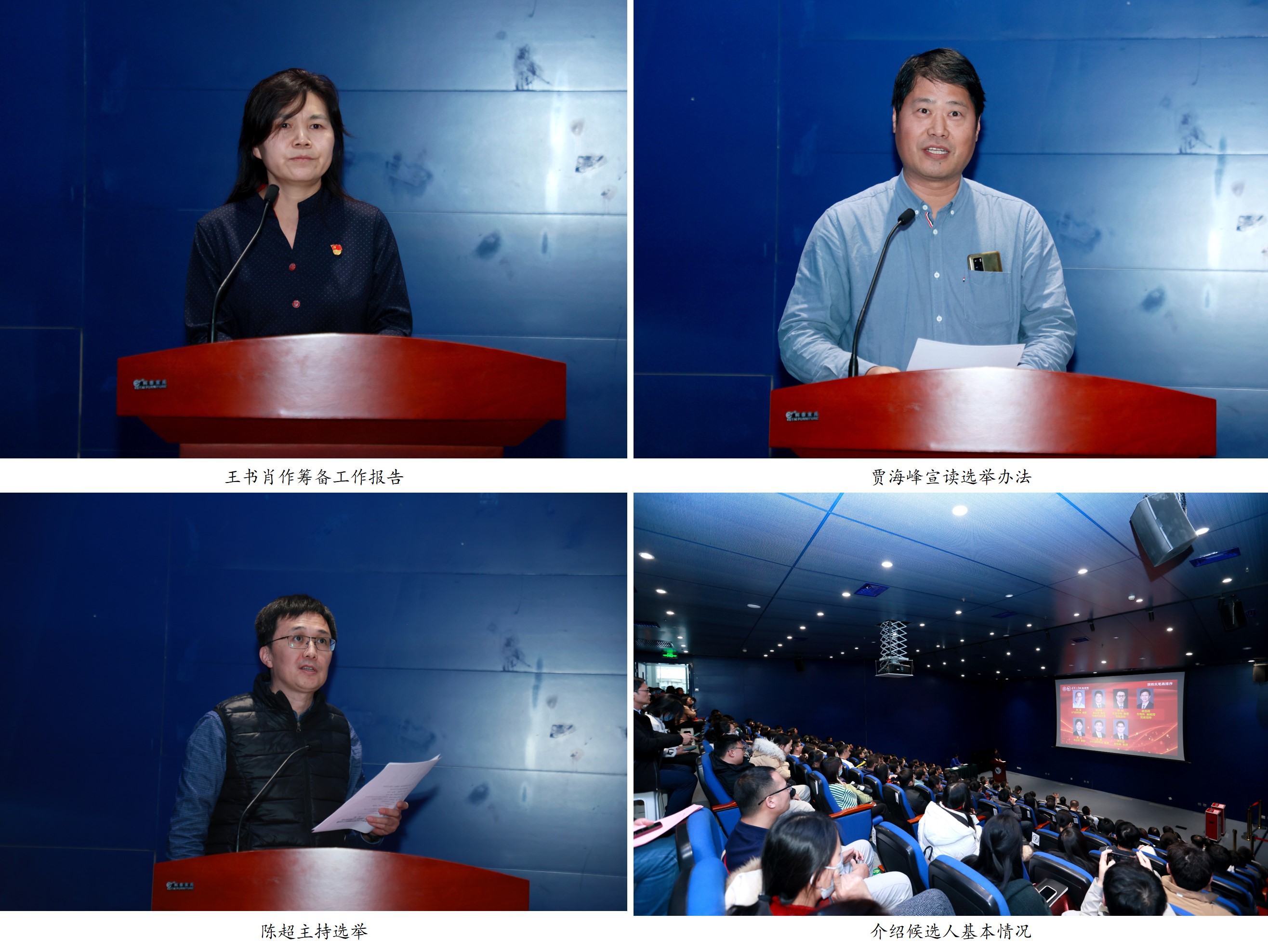 王书肖作环境学院第一届教职工代表大会筹备工作报告。校教代会环境学院教代组组长贾海峰宣读了《江南网页版第一届教职工代表选举办法》。会上,介绍了建议名单中的各位候选人基本情况。经大会审议举手表决,通过选举办法、候选人建议名单以及总监票人和监票人名单。总监票人、环境学院原工会主席陈超主持教职工代表大会代表的选举。参会人员认真填写选票并郑重将选票投入票箱。
