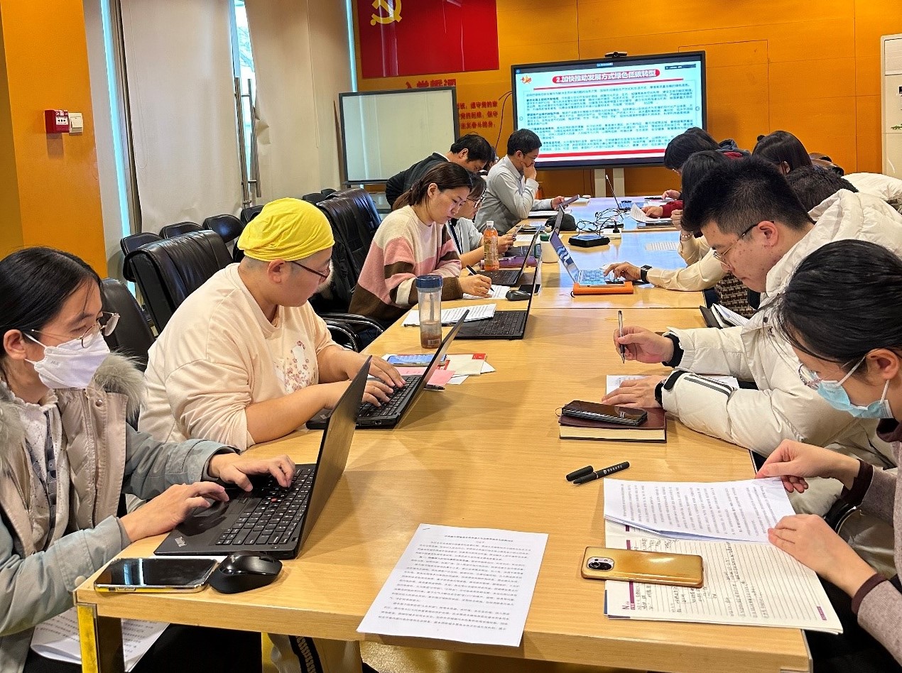 首先,党支部全体党员集中学习了习近平总书记在《求是》杂志发表的文章——《以美丽中国建设全面推进人与自然和谐共生的现代化》。王芬芬、龙洁、白雨鑫、陈青、谢丹、杨洋等6位同志分别领读,并结合自己的实际工作发表感想。王芬芬梳理了我国过去10年空气质量的改善情况,表示我国是全球空气质量改善速度最快的国家,总结了持续深入打好污染防治攻坚战的成效;龙洁结合实际调研中白酒行业的情况讨论了产业绿色转型升级的必要性,提出要加强废弃物资源、酒糟等有机质循环利用,深化产业循环园区建设,加快建立绿色低碳循环发展的经济体系;白雨鑫提出,应站在更高层次上思考和推进生态保护工作,做好“昆明-蒙特利尔全球生物多样性框架”等方面的研究工作;陈青提出,在推进碳达峰碳中和的过程中,环保部门、企业、个人都需要发挥作用,但也都面临着需要解决的实际问题;谢丹介绍了习近平总书记底线思维的发展历程,并结合《中共中央 国务院关于全面推进美丽中国建设的意见》,对比梳理了美丽中国建设安全底线的重要内容;杨洋提出,美丽中国建设是系统工程,要健全美丽中国建设保障体系,必须加深对自然规律、经济规律和社会规律的认识,综合运用行政、市场、法治、科技等多种手段加强生态环境治理。