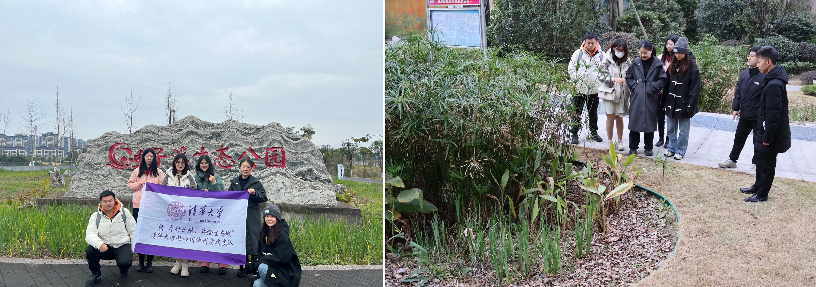 支队成员实地走访参观了翡翠滨江小区和渔子溪生态公园两个泸州市海绵城市建设典型项目。同学们发现,翡翠滨江小区巧妙地利用了当地丘陵地势的自然高差实现了雨水的收集和导流,是因地制宜的案例表现;渔子溪生态公园蓄纳、导流雨水的功能主要由水体和陆上设计两部分实现。泸州是首批系统化全域推进海绵城市示范城市,这次走访让同学们对海绵城市设施的构成和作用有了更深刻的认识。通过与工作人员的深入交流,同学们充分了解到当地在雨水收集、存蓄、净化及利用方面的实际需求,尤其是雨水花园等生态雨水设施的污染物积累效应及风险尚不明晰,确定了后续课题的研究重点。