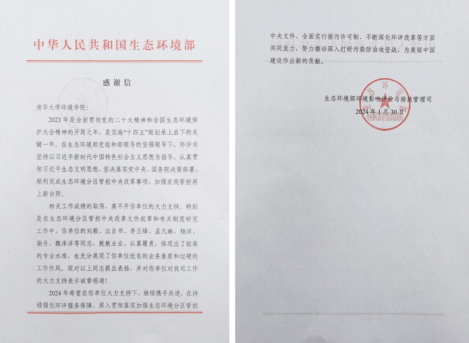 生态环境部感谢信