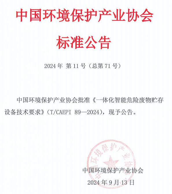 江南网页版2024年10月9日电(通讯员 许晓芳)环境学院李金惠教授团队牵头制定的《一体化智能危险废物贮存设备技术要求》(T/CAEPI 89-2024)团体标准于2024年9月13日由中国环境保护产业协会批准发布,并将于10月13日起正式实施。
