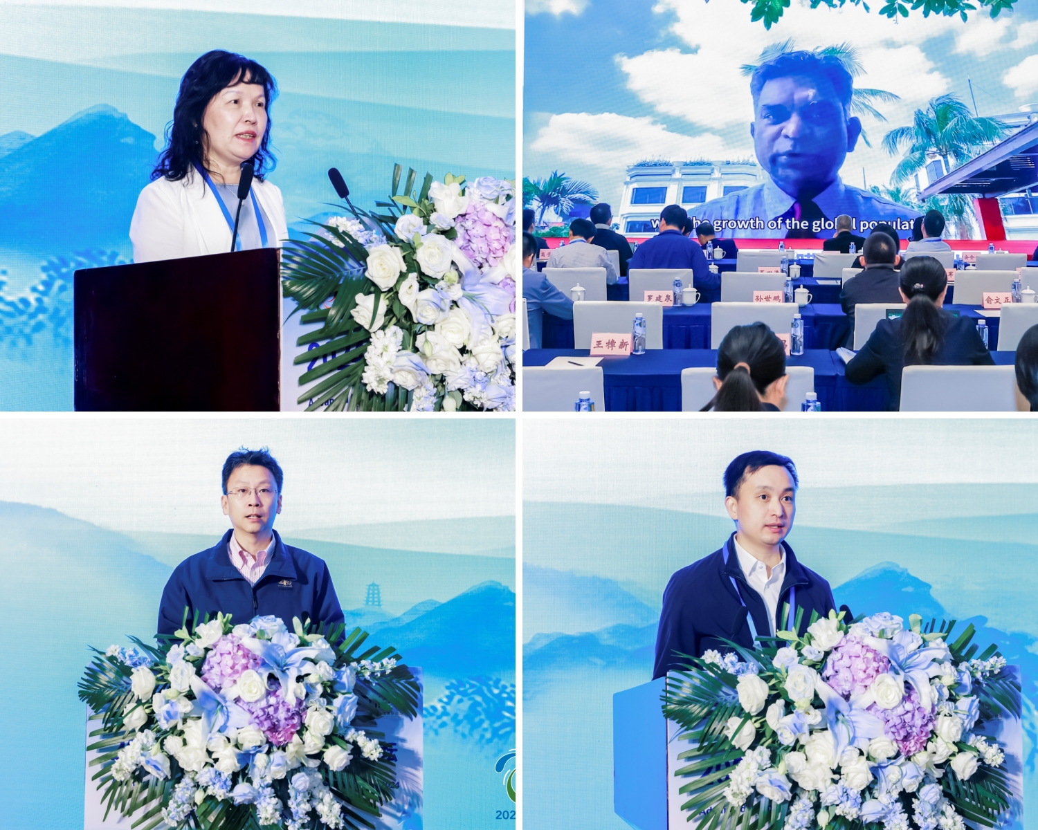 开幕式致辞(从左至右、从上至下:黄霞、Kalanithy Vairavamoorthy、席劲瑛、胡道成)