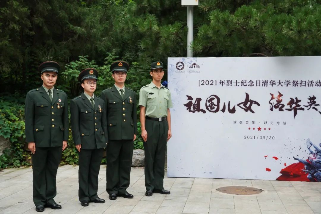 朱峰(右二)参加2021年烈士纪念日清华大学祭扫活动