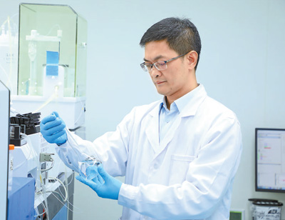 温宗国在实验室分析污染物组成和来源(孙波/摄)