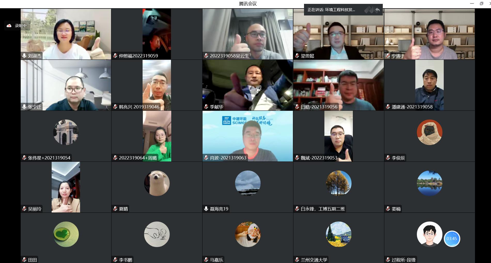 随后,24位清华大学创新领军工程博士生基于所从事的研究工作,围绕环境工程领域的重难点问题,就“环境前沿技术与应用”“环境技术交叉创新与融合”“环境产业模式创新发展”“环境化学环境工程应用创新示范”“绿色低碳技术应用示范”5个主题,分享了近期研究成果。多位同学在分享自身从事的重大工程技术问题研究进展的同时,还围绕本领域存在的亟待解决的工程技术相关瓶颈、问题以及未来展望进行了剖析,引发了线上线下同学关于环境领域相关行业低碳发展、产业技术升级、相关标准、技术路线与监管体系等话题的热烈讨论,现场气氛活跃,学术氛围浓厚。